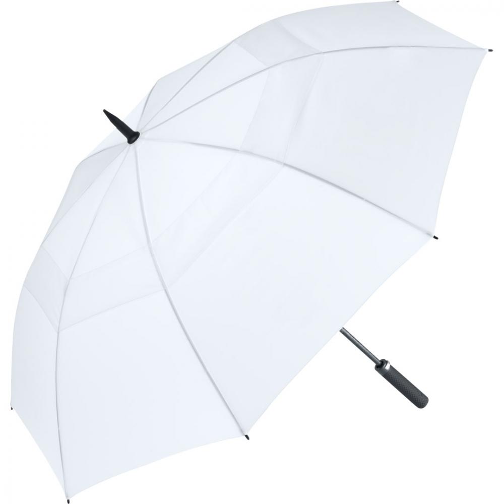 Удобная автоматическая функция для быстрого открытия, высококачественная ветрозащитная система для максимальной гибкости каркаса в штормовых условиях, прочный стержень из стекловолокна, гибкие спицы из стекловолокна, перекрывающий вентиляционный клапан для регулировки давления при сильных порывах ветра, чехол с двумя застежками для оптимальной фиксации в закрытом состоянии, эксклюзивная ручка Soft-Touch с поверхностью в виде ямочек для гольф-мяча, серебристая кнопка и возможность нанесения рекламной надписи, удобный чехол для переноски с плечевым ремнем, большой, вместительный диаметр.