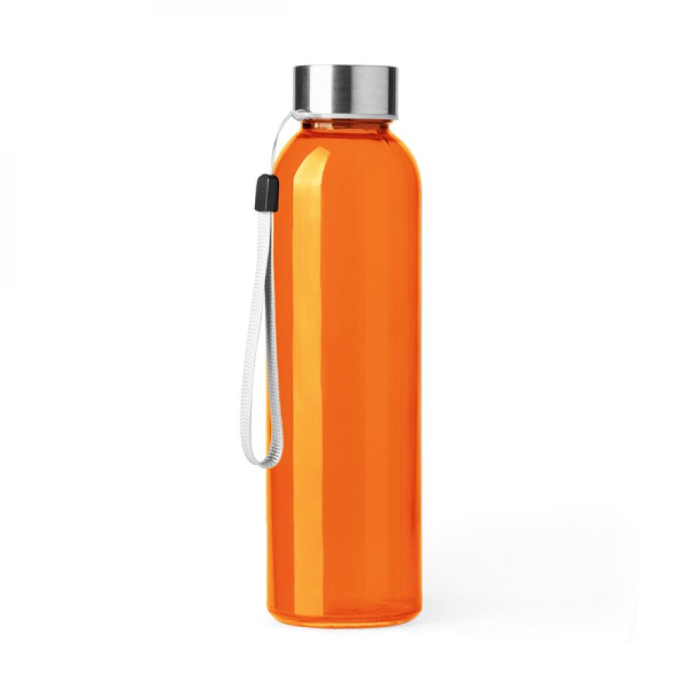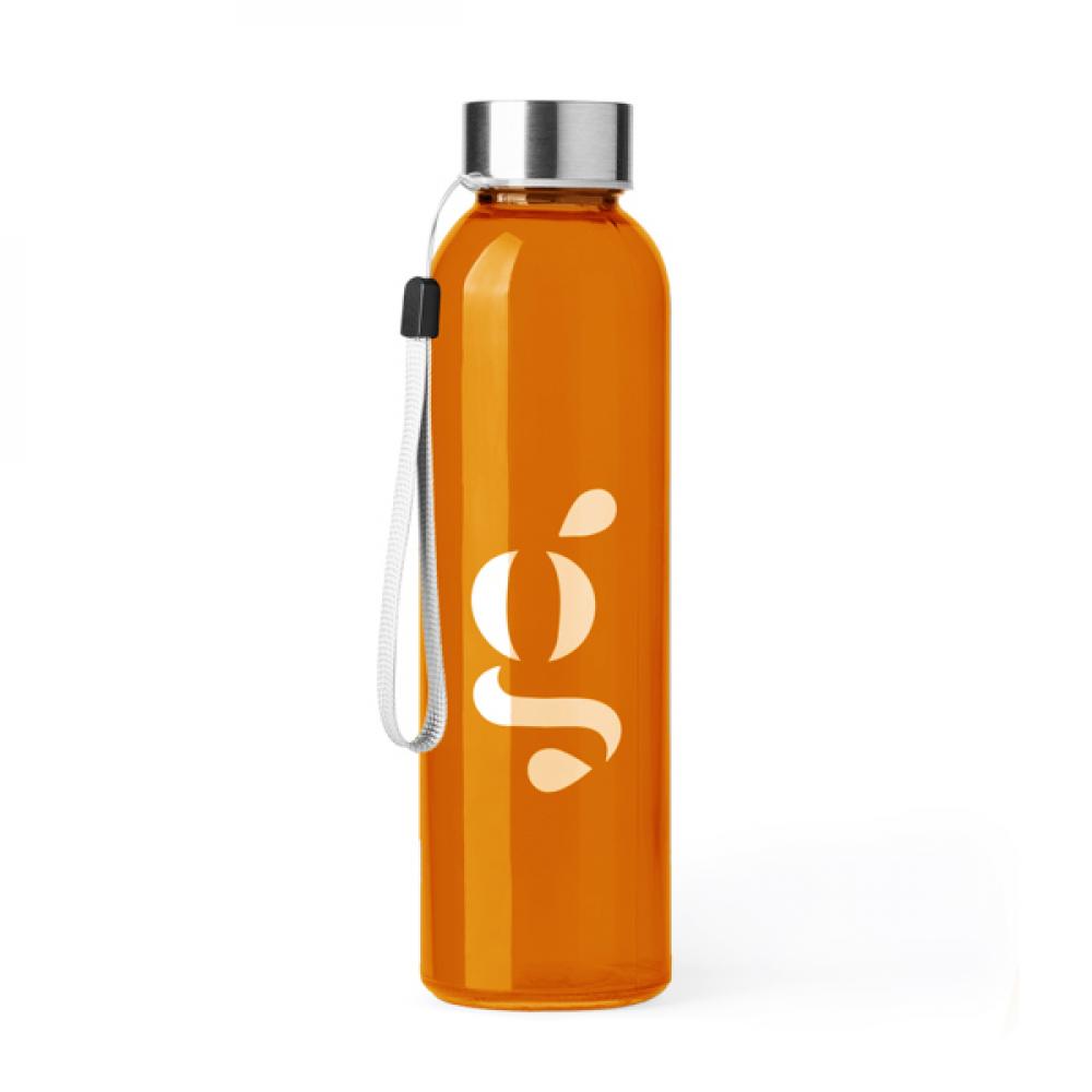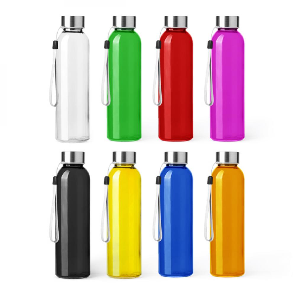 Бутылка с дизайном из стекла, доступная в широком ассортименте цветов, с нержавеющей стальной винтовой крышкой и удобной ручкой для переноски, в сером цвете.