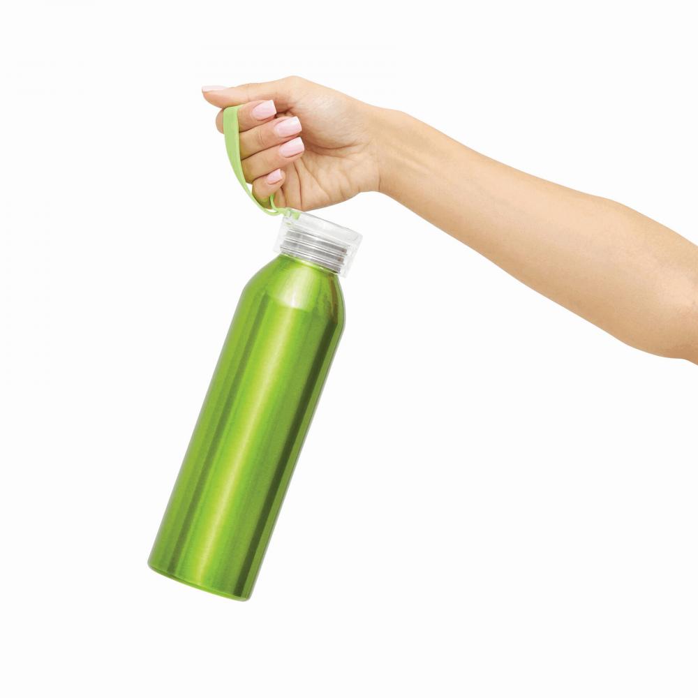 Алюминиевая бутылка для питья LOOPED : прозрачная пластиковая завинчивающаяся крышка, силиконовая петля, емкость ок. 650 мл