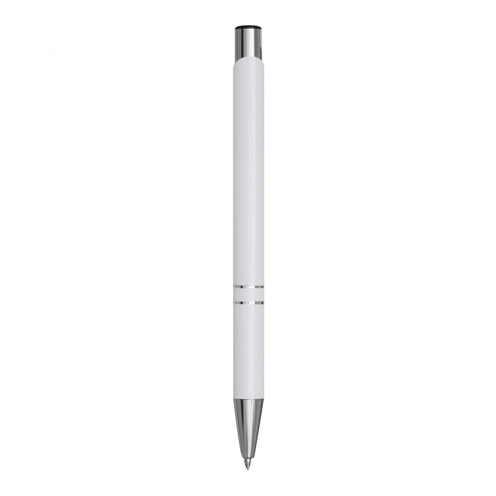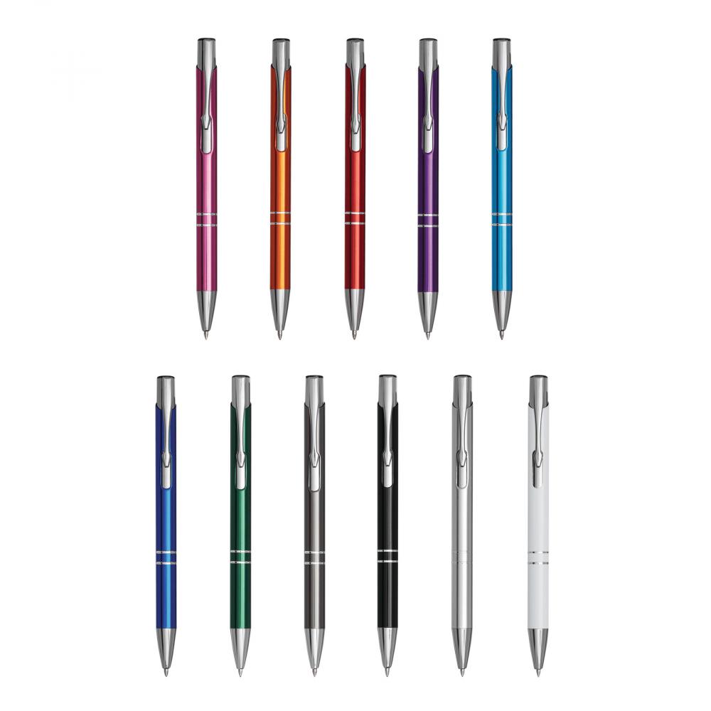 Алюминиевая шариковая ручка TUCSON: с блестящим металлическим стержнем, нажимным механизмом, большой заправкой, синими чернилами