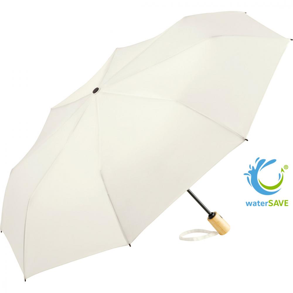 Удобная функция автоматического открытия/закрытия для быстрого использования, высококачественная ветрозащитная система для максимальной гибкости каркаса в штормовых условиях, материал покрытия из полиэстера понже, изготовленный из переработанных пластиков, с этикеткой waterSAVE® на застежке (с новыми поставками), ручка из бамбука с черной кнопкой и возможностью нанесения рекламной надписи. Также доступен в среднем размере.