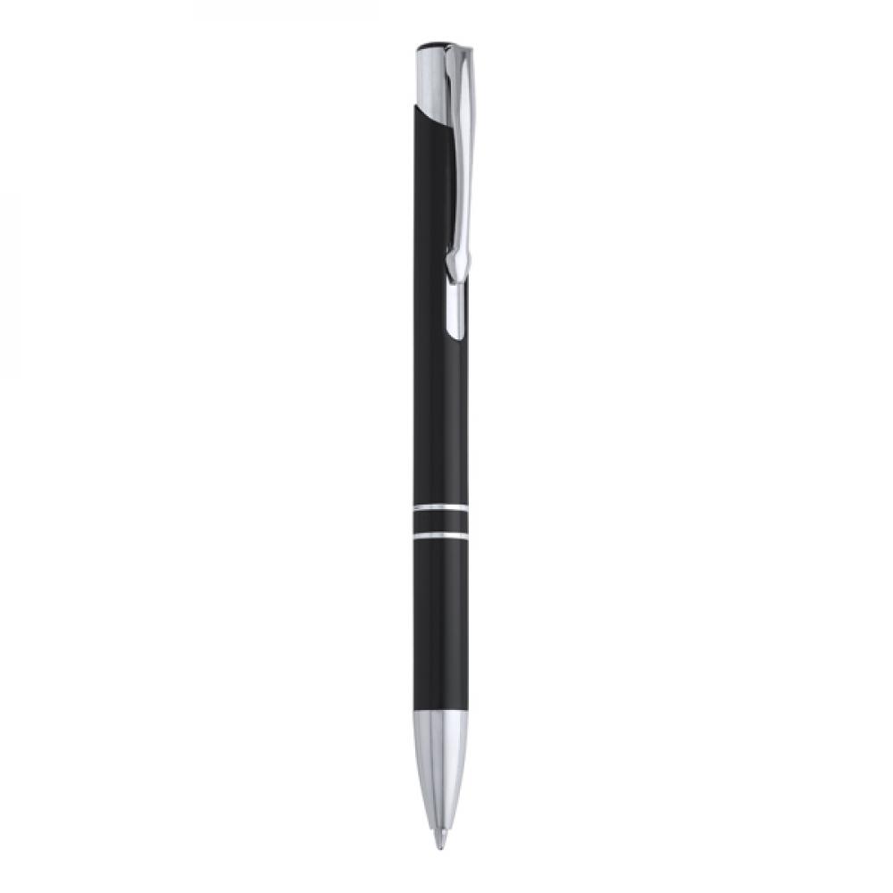 Шариковая ручка с алюминиевым корпусом и кнопкой с анодированным покрытием. Заправка Jumbo с синими чернилами.