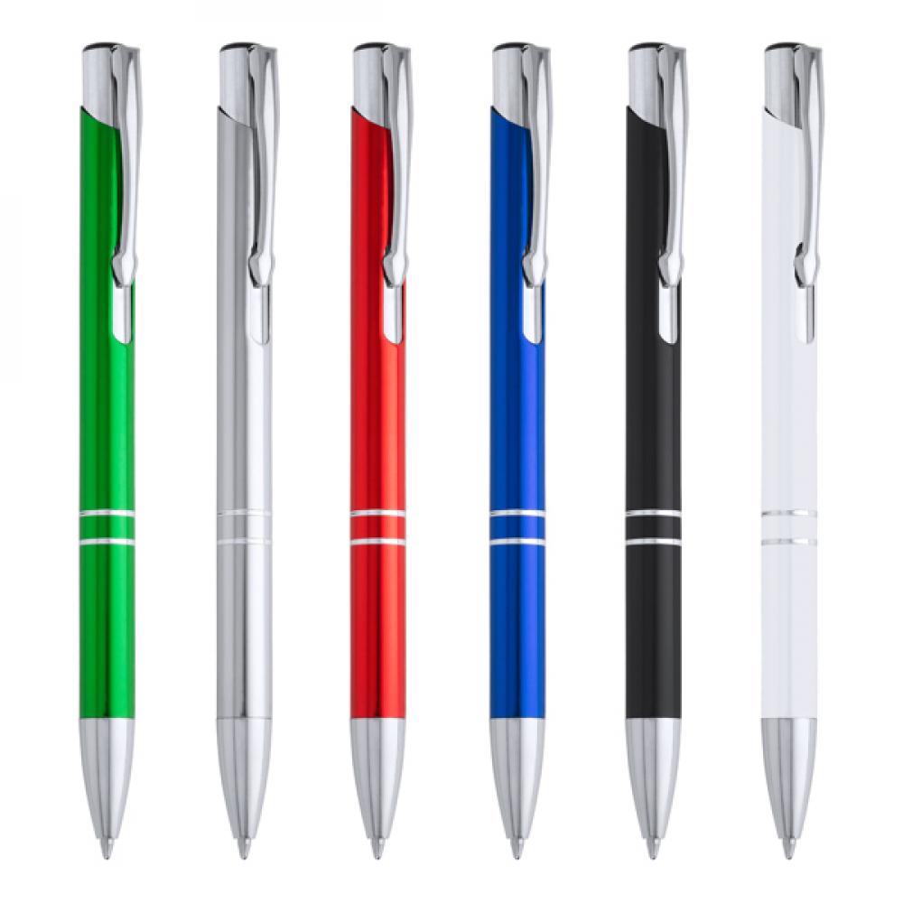 Шариковая ручка с алюминиевым корпусом и кнопкой с анодированным покрытием. Заправка Jumbo с синими чернилами.