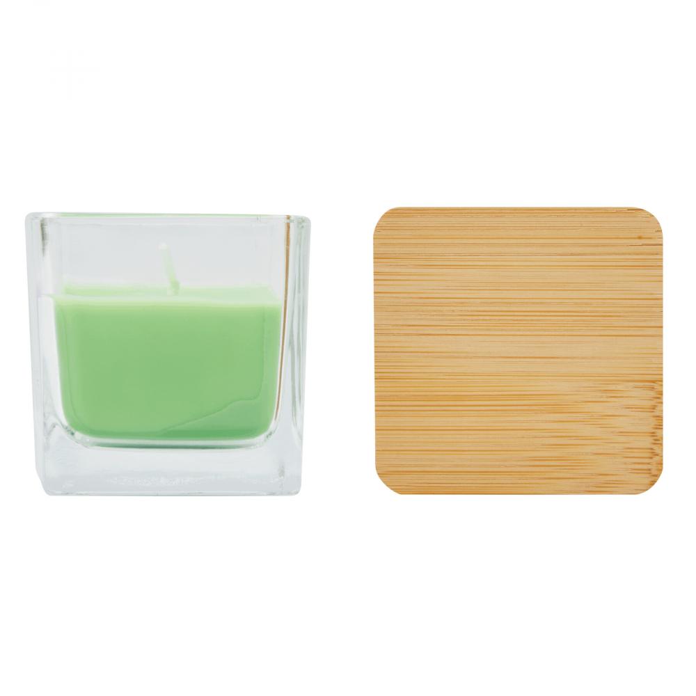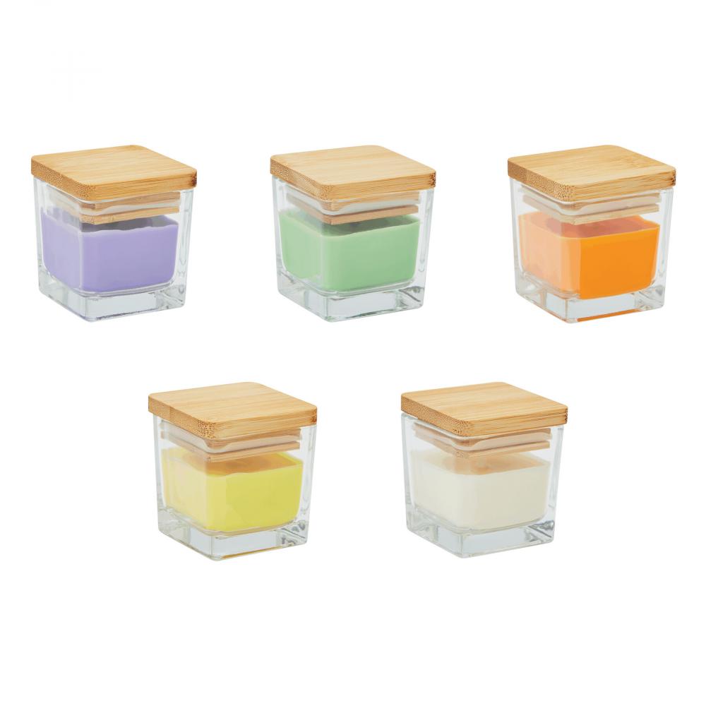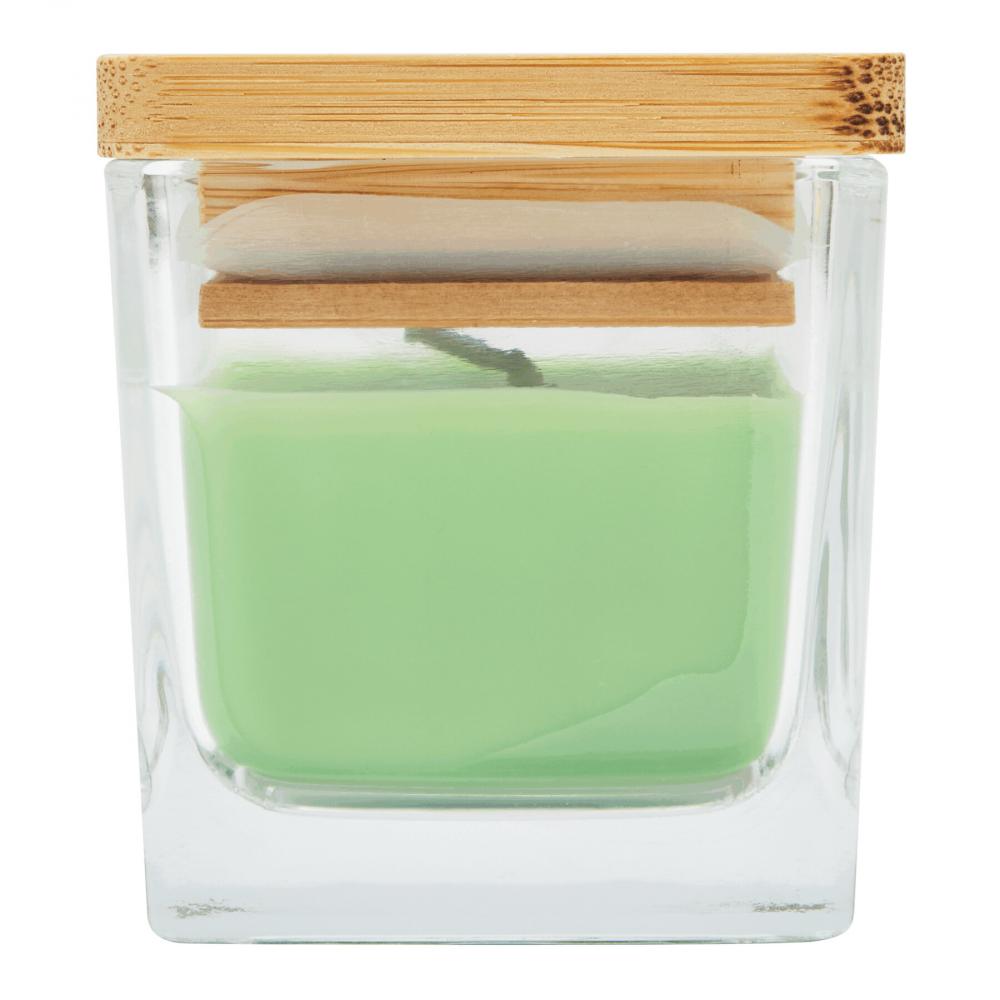 Ароматическая свеча GLOW: в квадратном стекле, цветной воск с ароматом лаванды, бамбуковая крышка с силиконовым уплотнительным кольцом, время горения около 8 часов