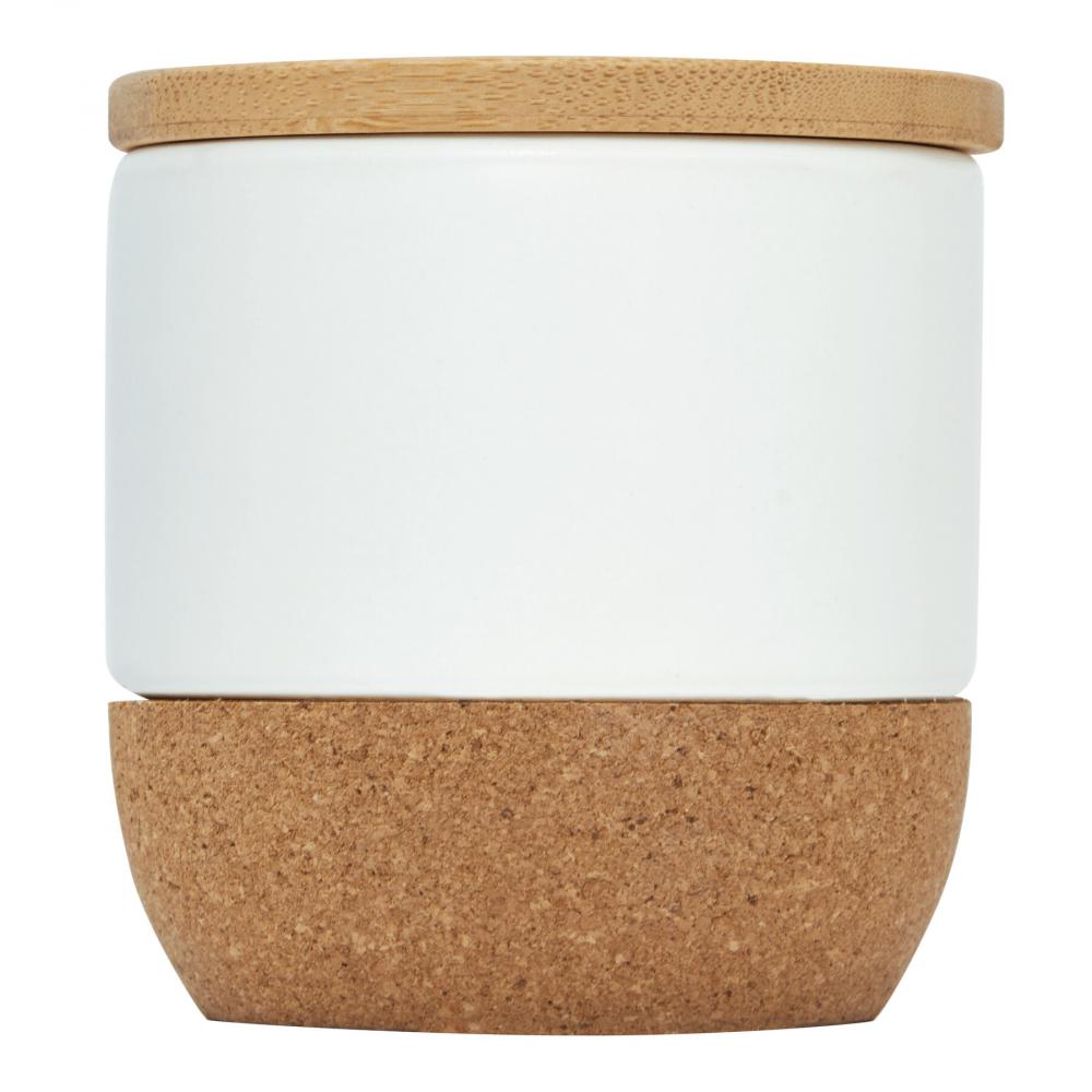 Ароматическая свеча PURE BREEZE: в керамической чаше с пробковой основой, съемная бамбуковая крышка с силиконовым уплотнительным кольцом, воск пахнет свежим воздухом и горит примерно 20 часов