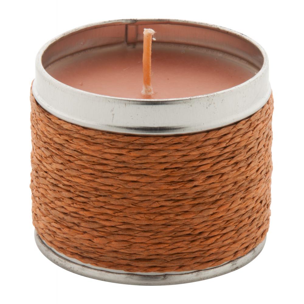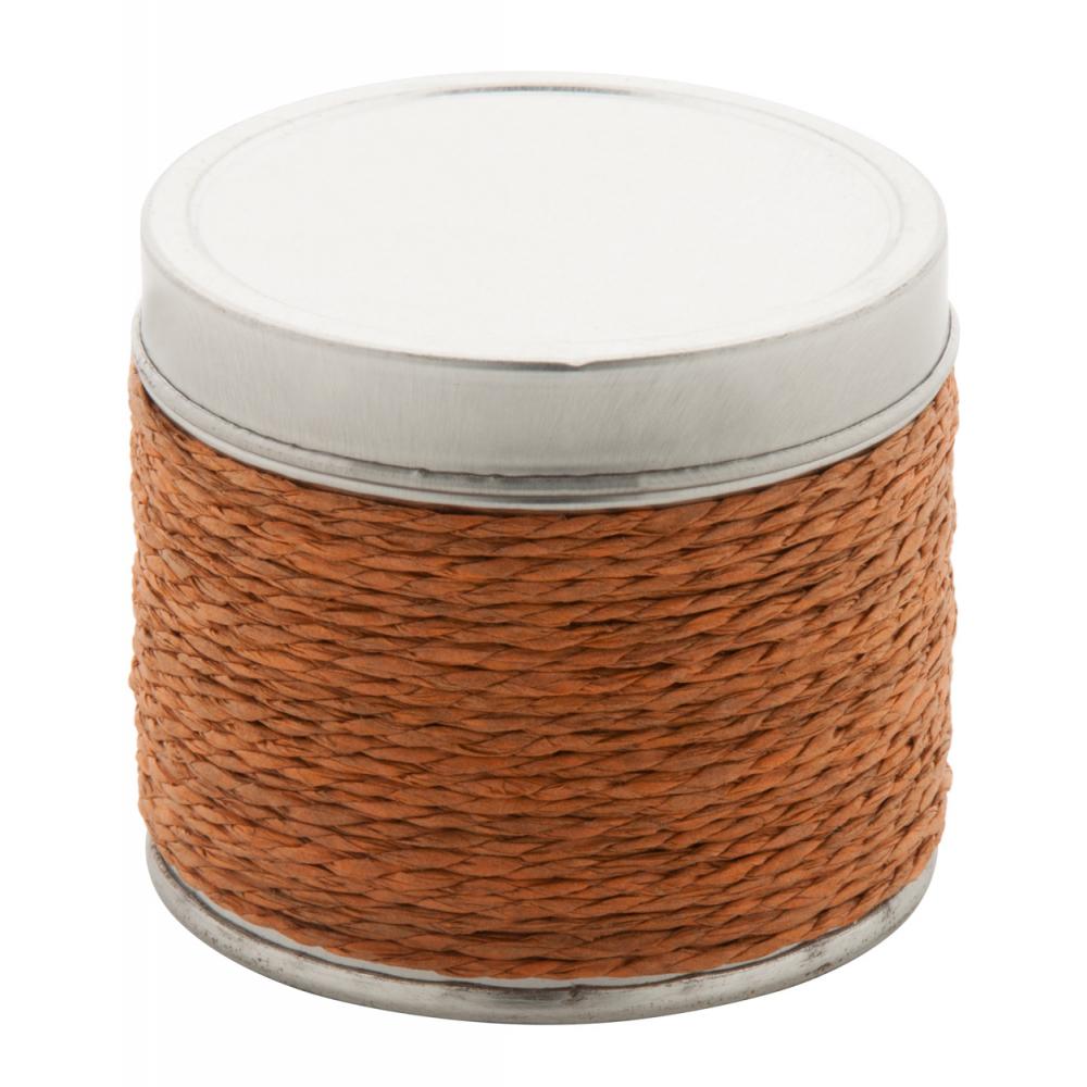 Ароматическая свеча в металлической жестяной баночке, перевязанной шнурком.