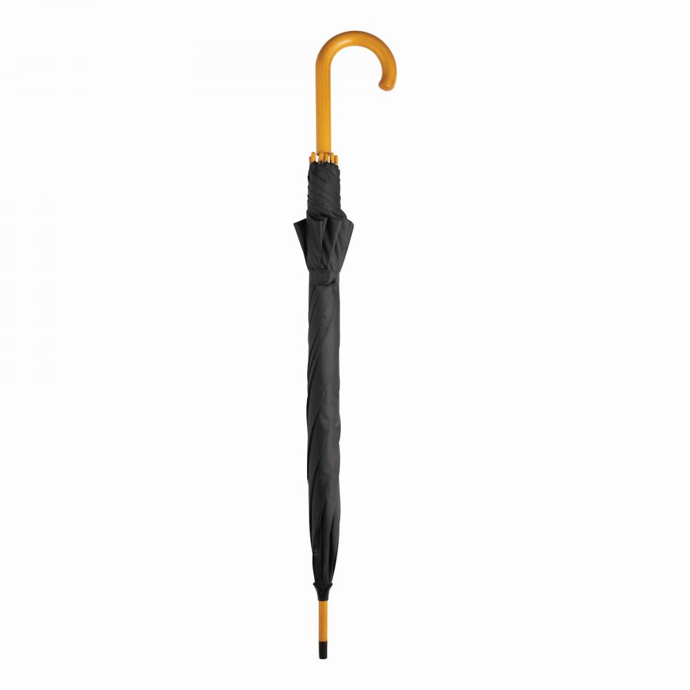 Автоматический деревянный зонт TANGO с металлическими ребрами, деревянными наконечниками и деревянной изогнутой ручкой с навесом из полиэстера, застежка на липучке