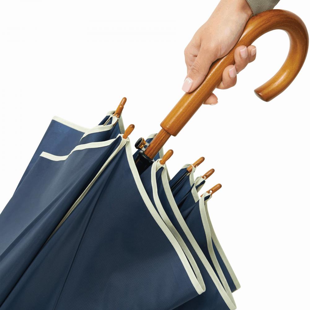 Автоматический зонт WALTZ с деревянной тростью и светлой окантовкой, спицы - металл, наконечники и ручка - дерево, материал - полиэстер 190 T