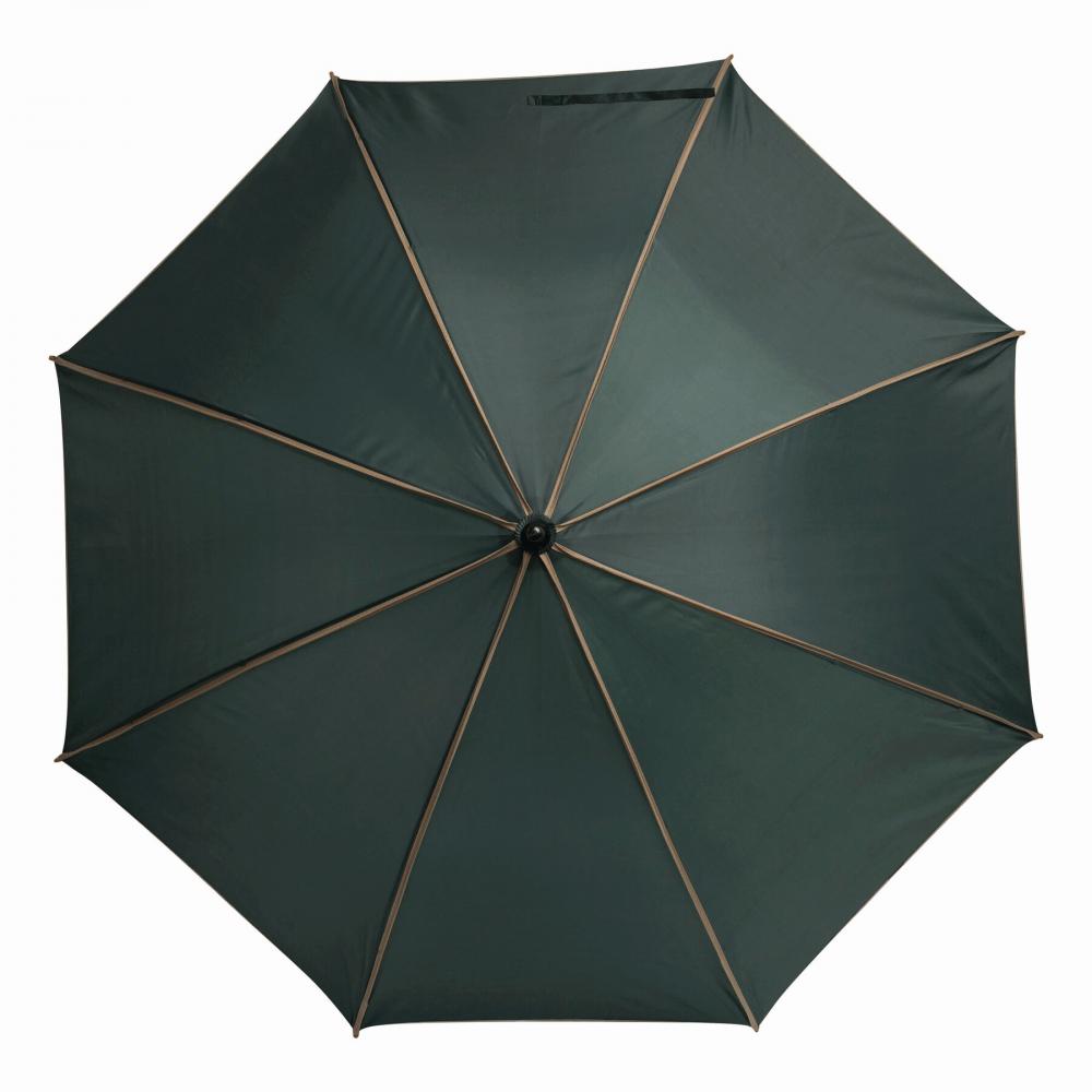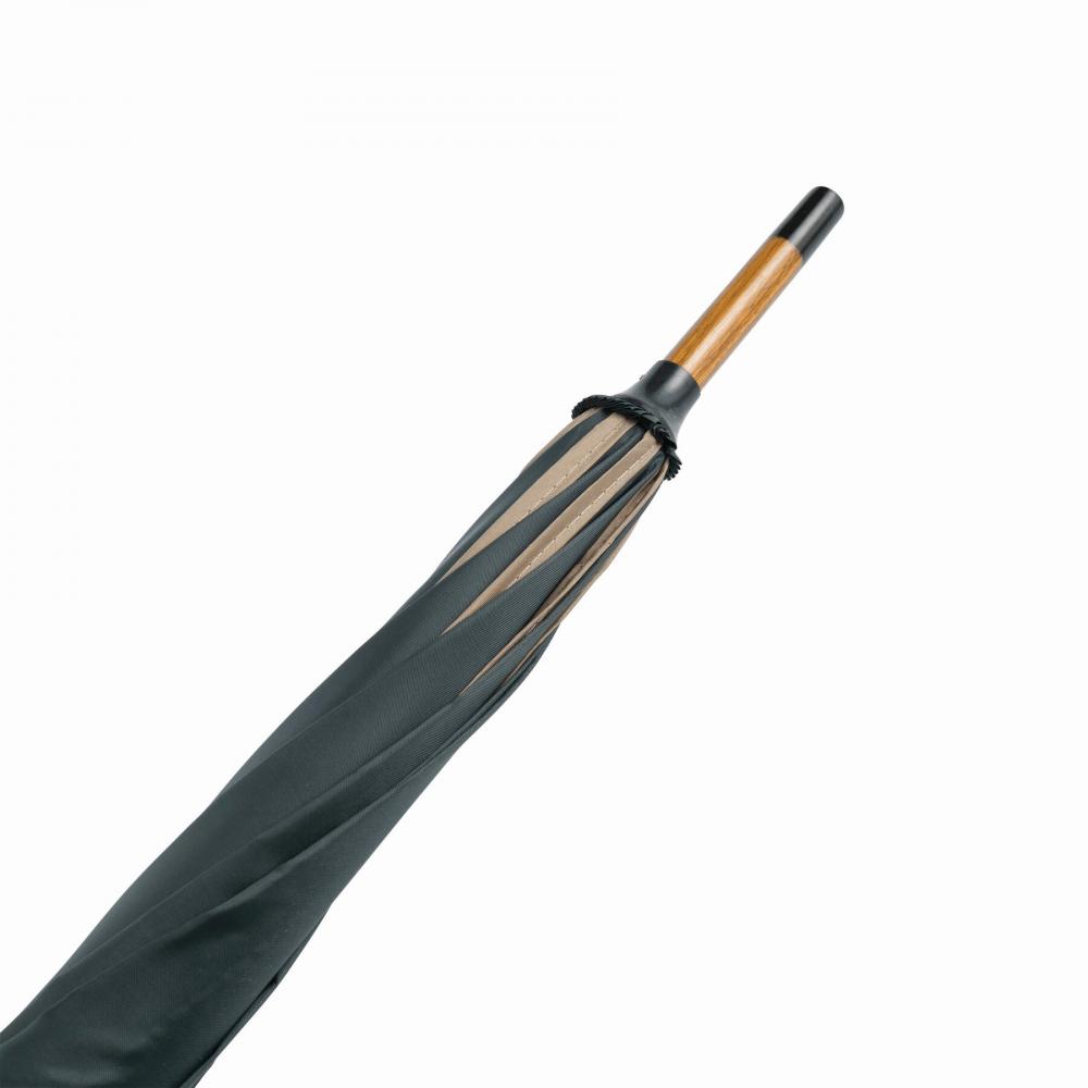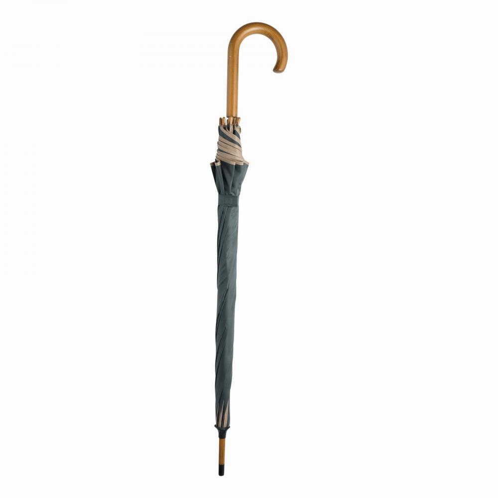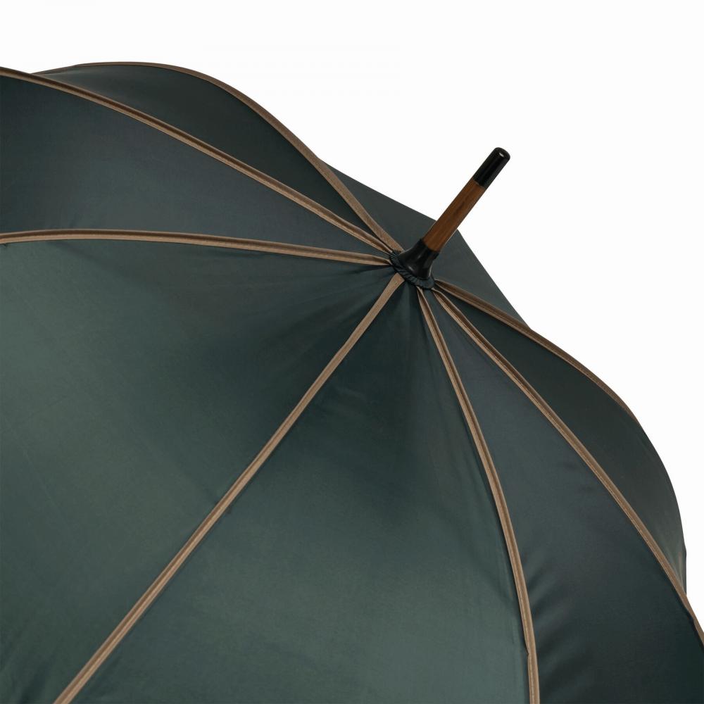 Автоматический деревянный зонт WALTZ с окантовкой цвета, металлическими ребрами, деревянными наконечниками и деревянной изогнутой ручкой, с навесом из полиэстера