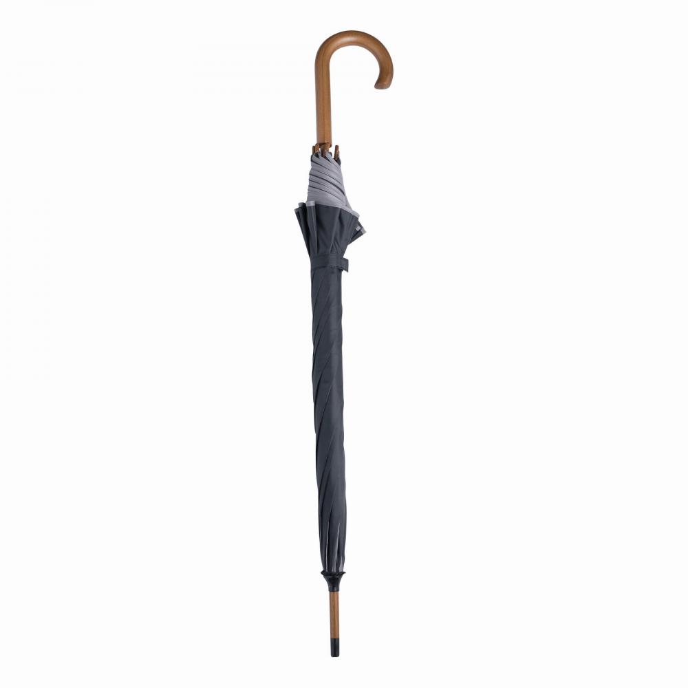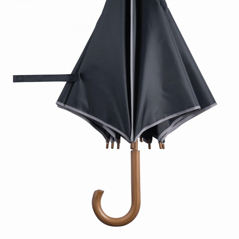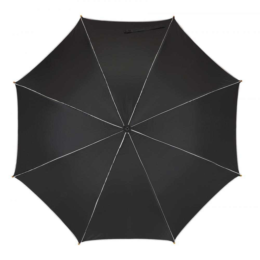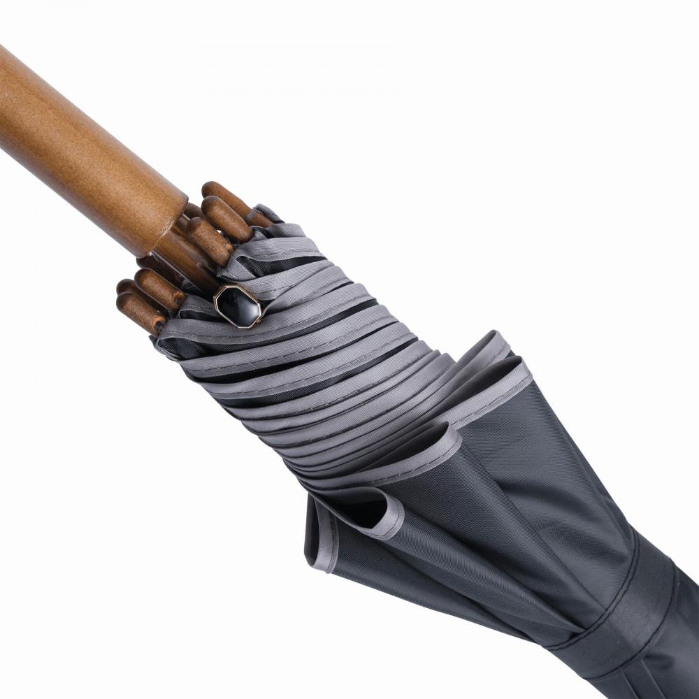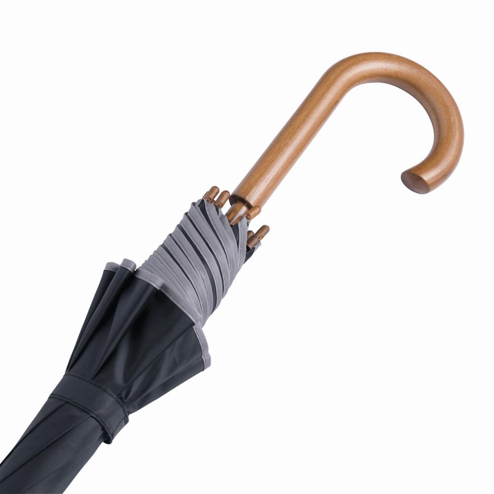 Автоматический деревянный зонт WALTZ с окантовкой цвета, металлическими ребрами, деревянными наконечниками и деревянной изогнутой ручкой, с навесом из полиэстера