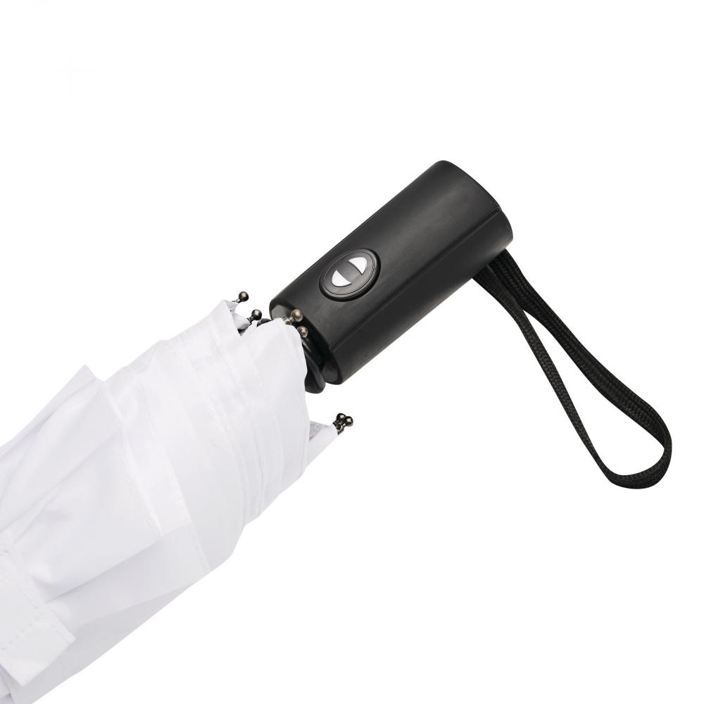 Автоматический карманный зонт MISTRAL: 3-секционный металлический стержень, с металлическими и стекловолоконными спицами, металлические наконечники, ручка с резиновым покрытием и петлей, купол из полиэстера понже, ремешок для закрытия с застежкой на липучке