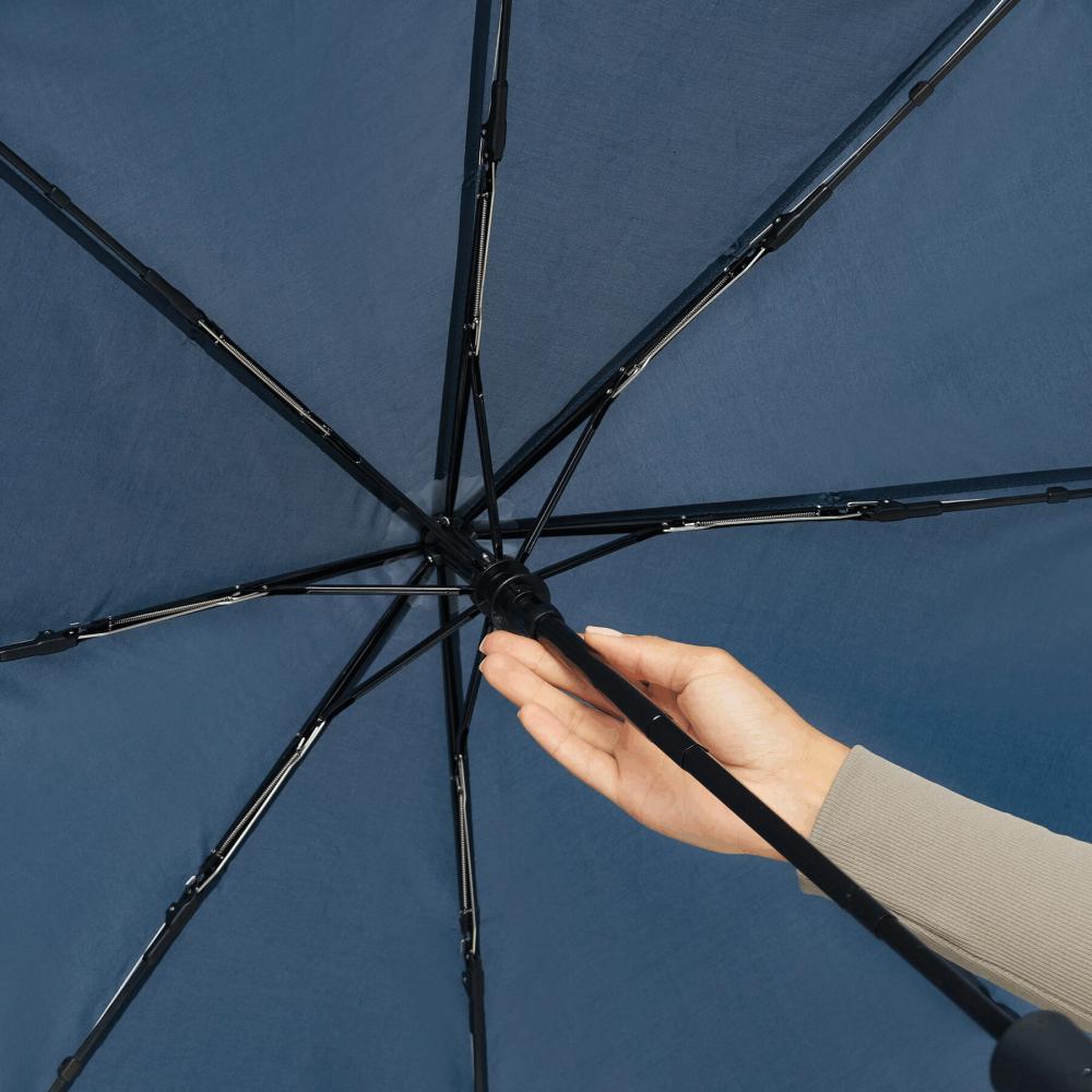 Автоматический открытый-закрывающийся ветрозащитный карманный зонт PLOPP с чехлом соответствующего цвета: трехсекционный металлический стержень, с ребрами из металла / стекловолокна и металлическими наконечниками, прорезиненная ручка с петлей, капюшон из полиэстера, застежка на липучке