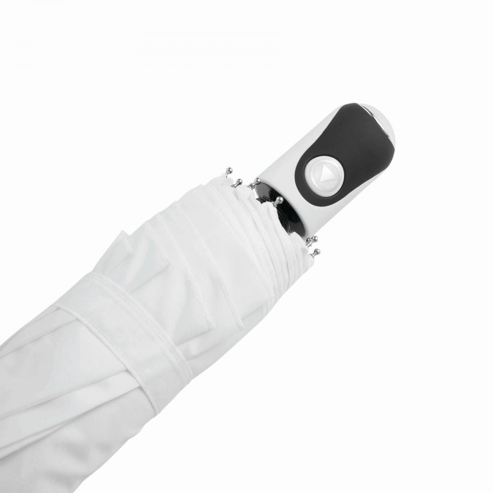КРЫШКА для автоматического карманного зонта с трехкомпонентным металлическим стержнем, ребрами и наконечниками, прорезиненной ручкой с рифлением и капюшоном из полиэстера с мешочком, застежка на липучке
