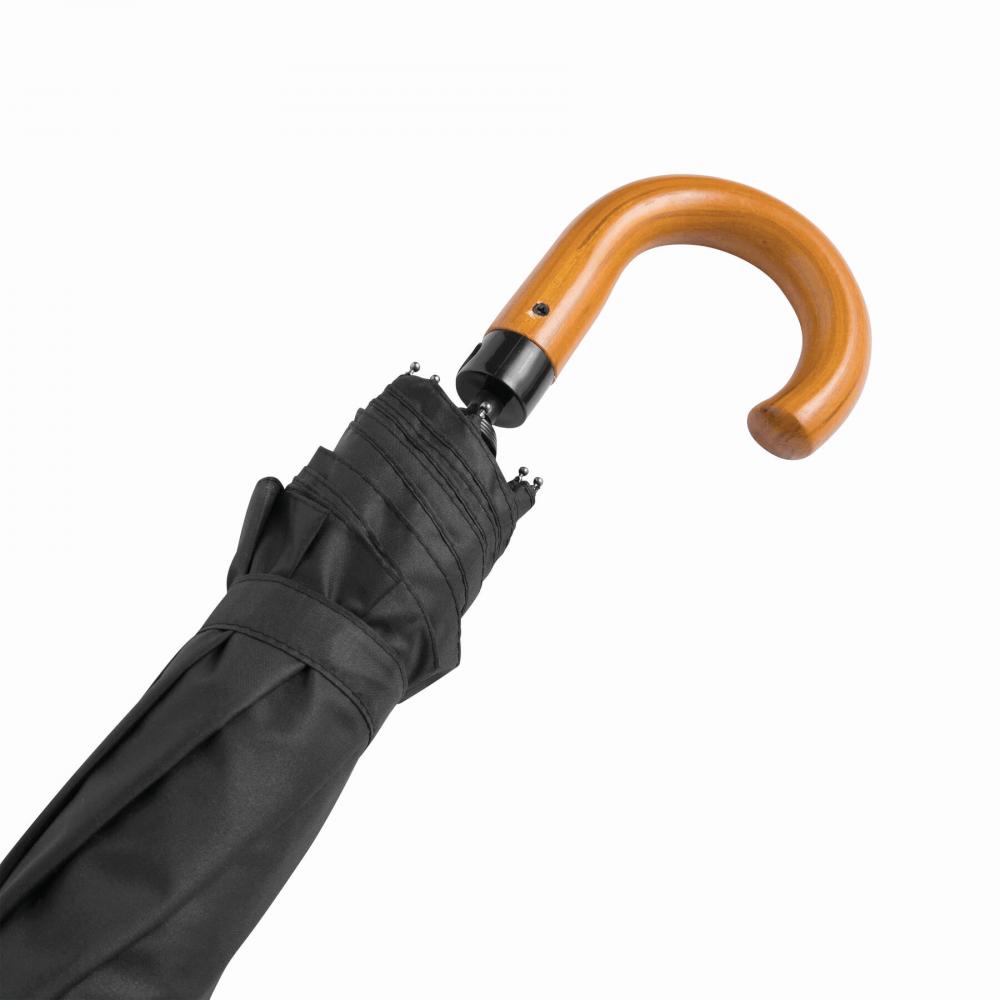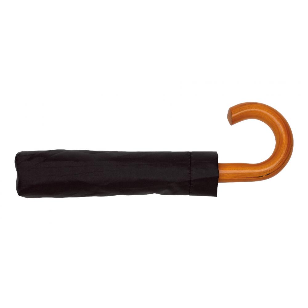Автоматический карманный мужской зонт LORD с металлическим стержнем, состоящим из трех частей, с ребрами из металла / стекловолокна и металлическими наконечниками, с деревянной изогнутой ручкой, капюшоном из полиэстера со специальным водостойким покрытием, застежкой на липучку