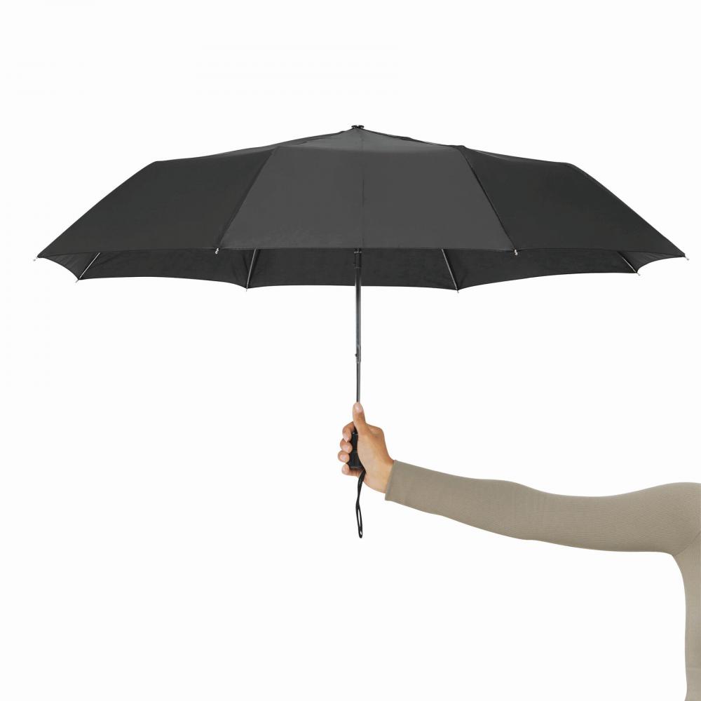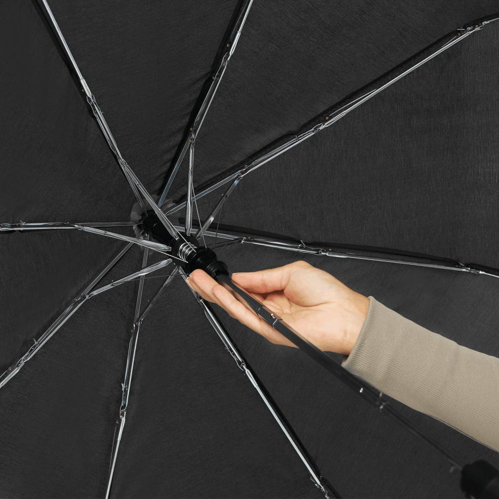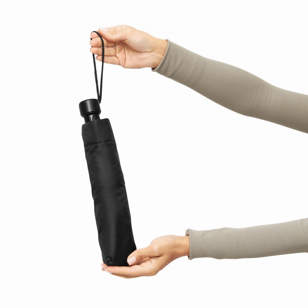 Автоматический карманный зонт PRIMA, в футляре разной цветовой гаммы: металлический стержень, состоящий из трех частей, ребра и наконечники, черная пластиковая ручка с цветной автоматической кнопкой разблокировки и поддерживающей петлей, капюшон из полиэстера и застежка на липучке