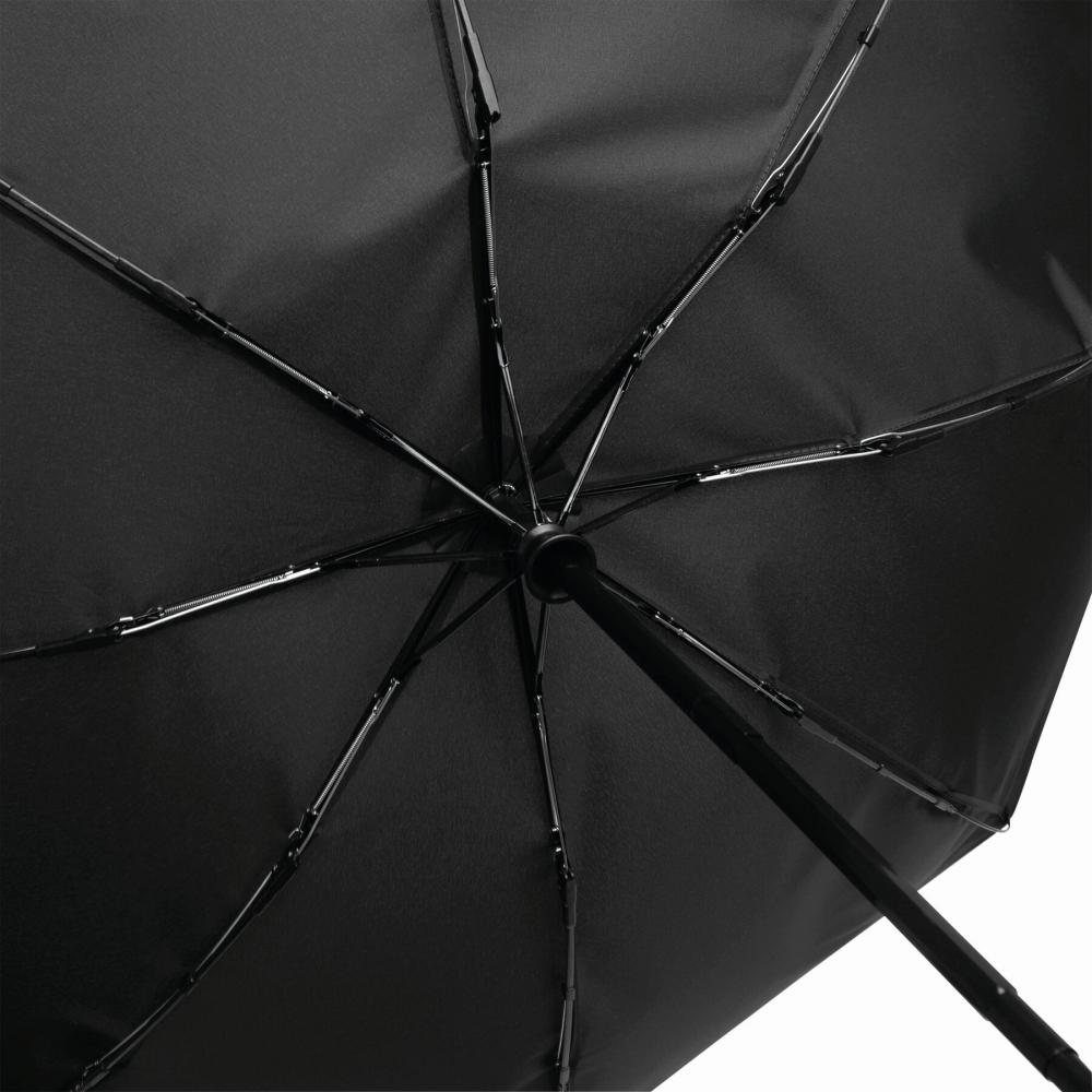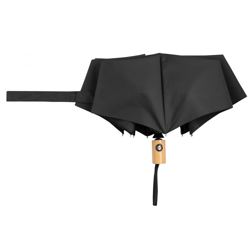 Автоматический ветрозащитный карманный зонт CALYPSO с чехлом соответствующего цвета: 3-секционный металлический стержень с ребрами жесткости из металла / пластика / стекловолокна и металлическими наконечниками, бамбуковая ручка с петлей для переноски соответствующего цвета, навес из полиэстера pongee, изготовленный из переработанного пластика (глобальный стандарт утилизации), застежка на липучке