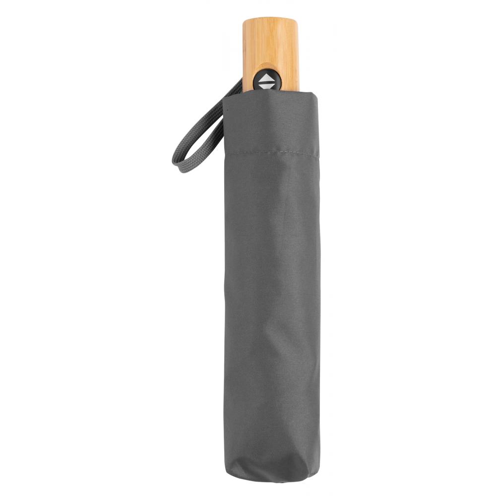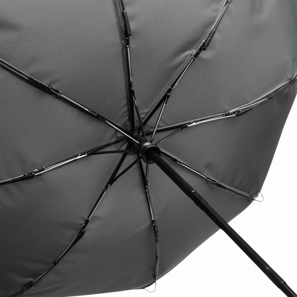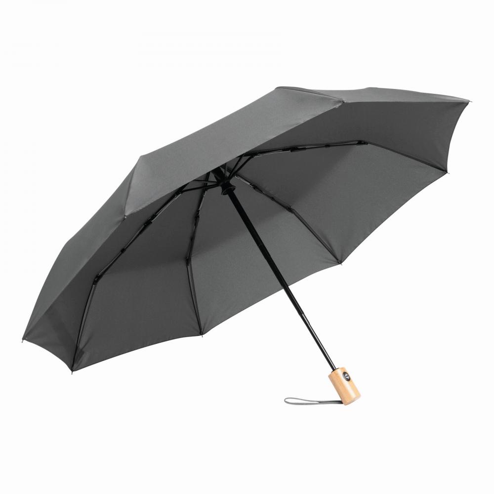 Автоматический ветрозащитный карманный зонт CALYPSO с чехлом соответствующего цвета: 3-секционный металлический стержень с ребрами жесткости из металла / пластика / стекловолокна и металлическими наконечниками, бамбуковая ручка с петлей для переноски соответствующего цвета, навес из полиэстера pongee, изготовленный из переработанного пластика (глобальный стандарт утилизации), застежка на липучке