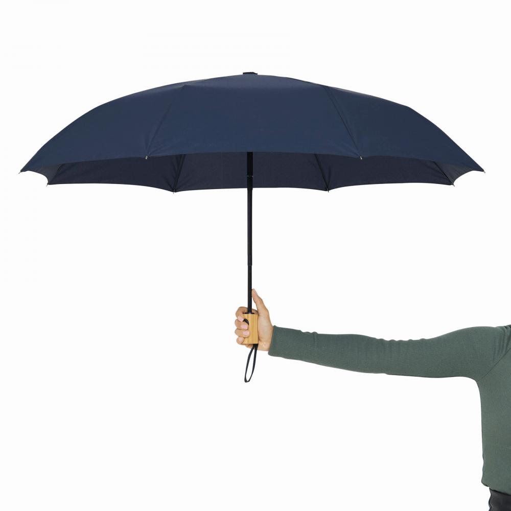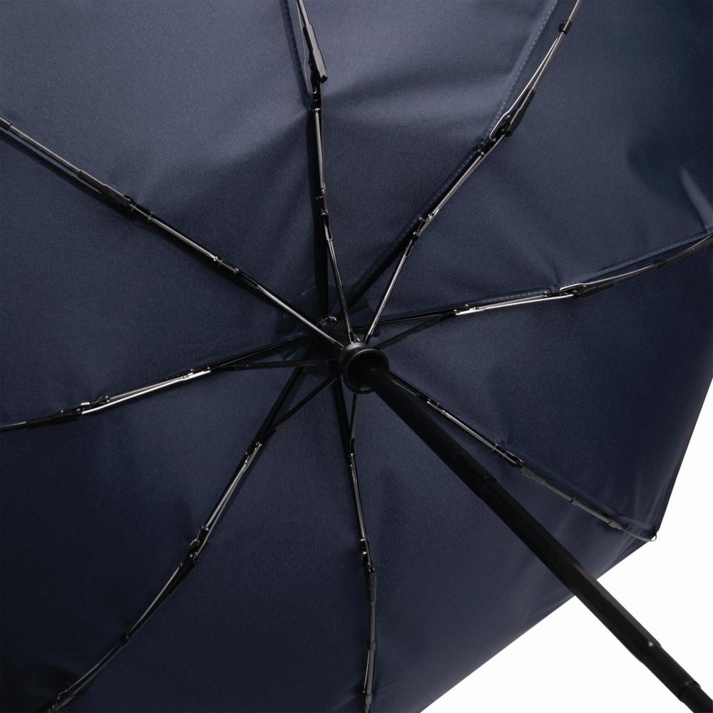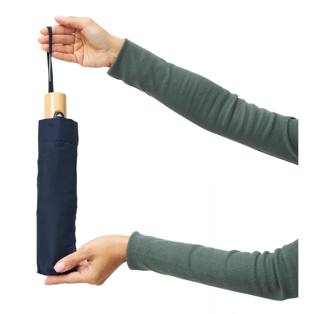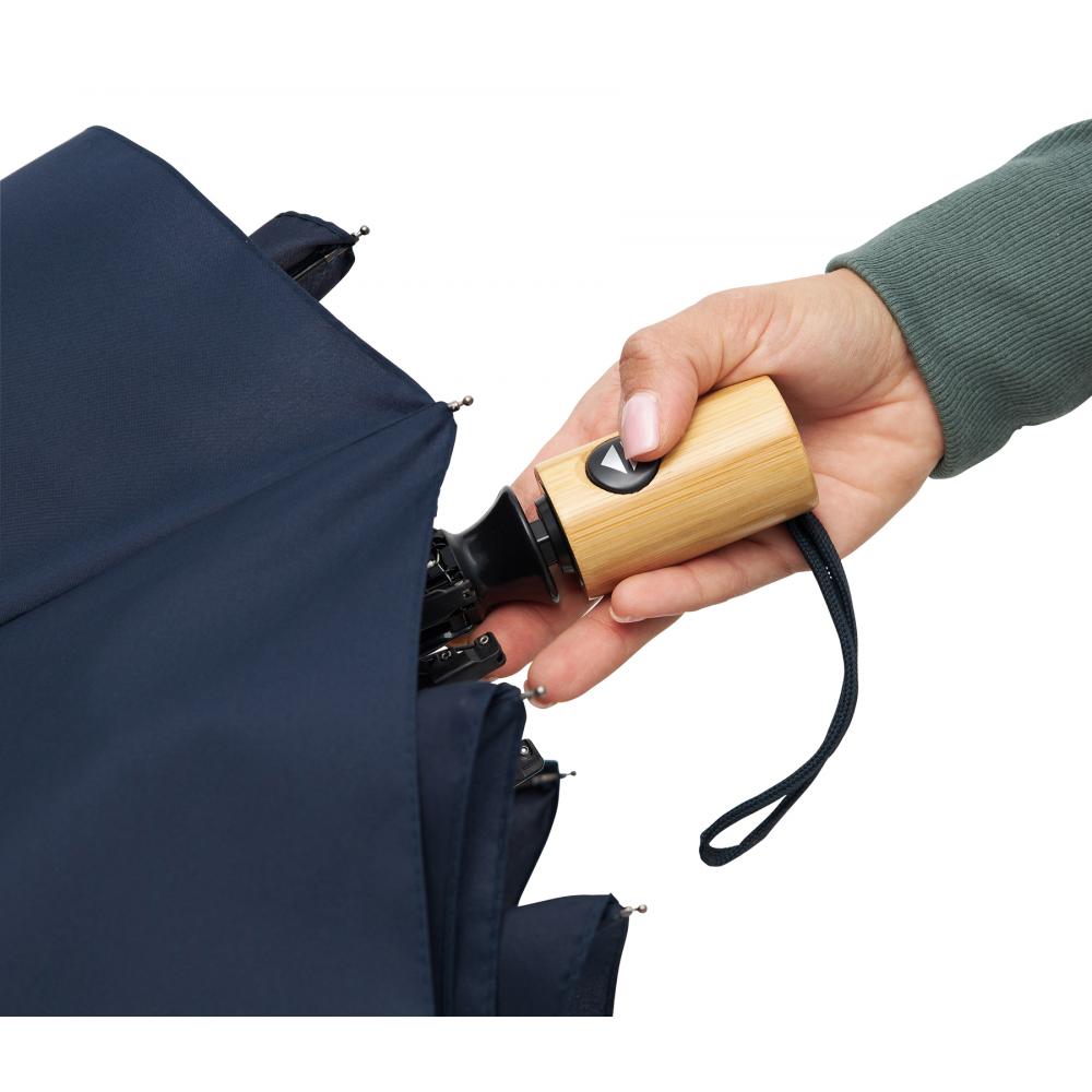 Автоматический ветрозащитный карманный зонт CALYPSO с чехлом соответствующего цвета: 3-секционный металлический стержень с ребрами жесткости из металла / пластика / стекловолокна и металлическими наконечниками, бамбуковая ручка с петлей для переноски соответствующего цвета, навес из полиэстера pongee, изготовленный из переработанного пластика (глобальный стандарт утилизации), застежка на липучке