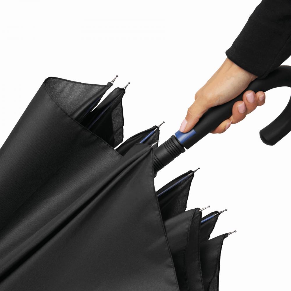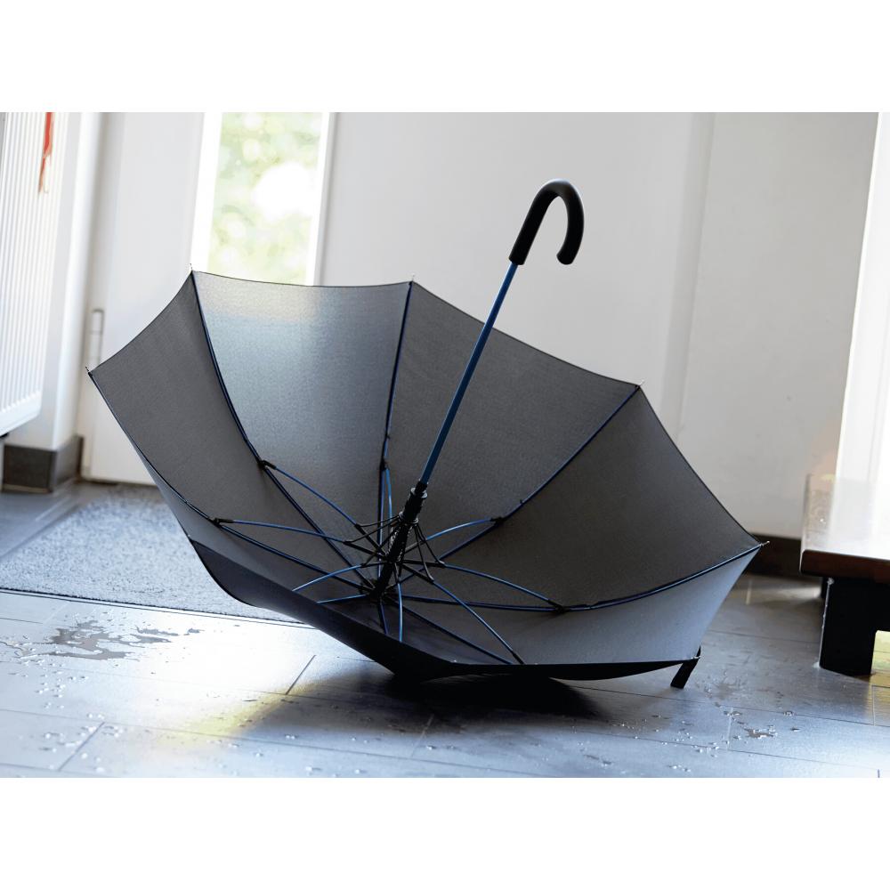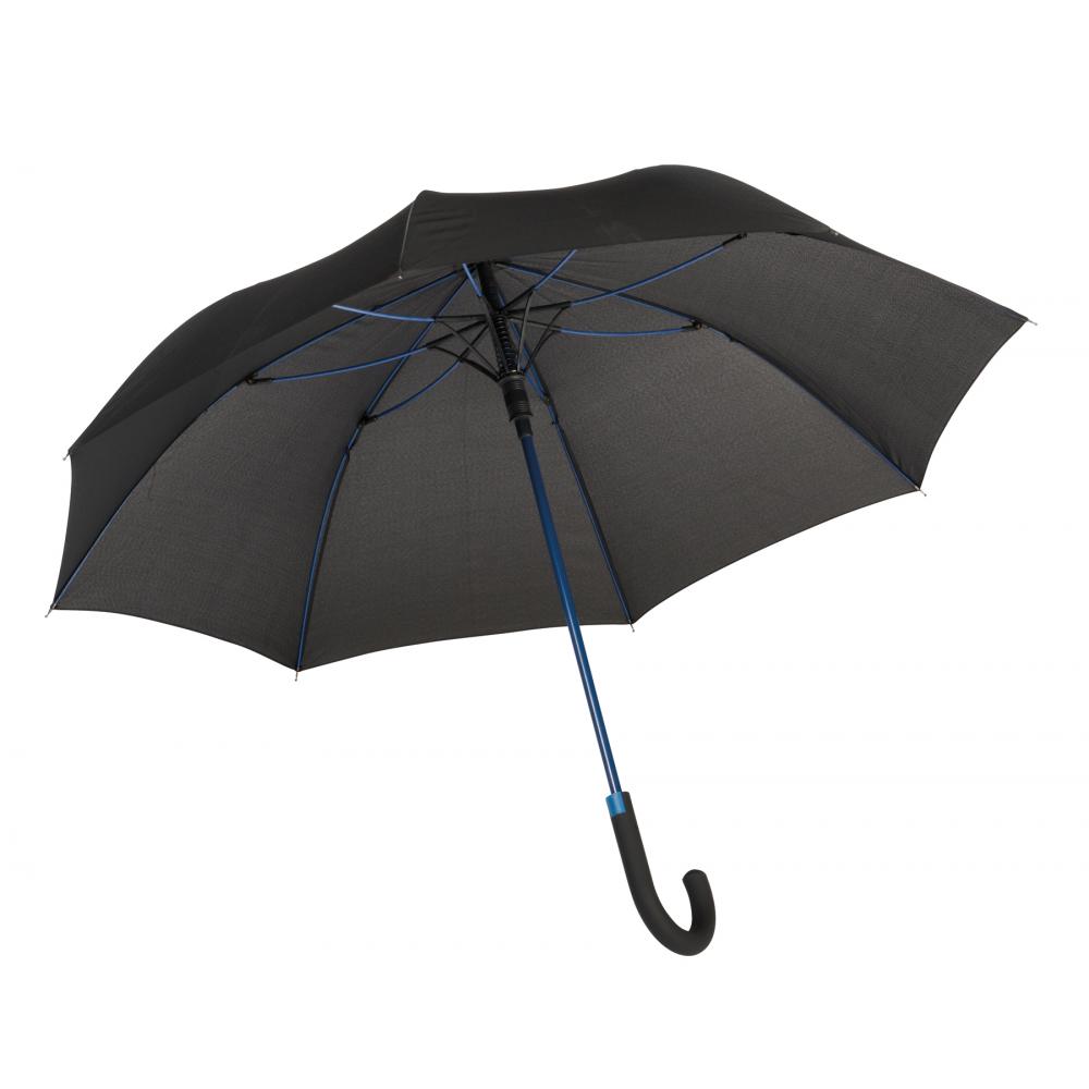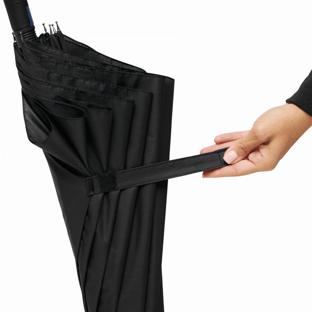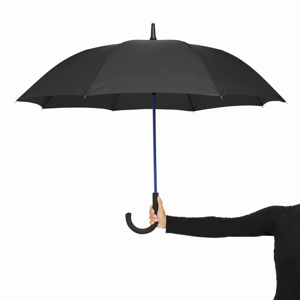 Зонт с автоматической ручкой CANCAN: металлический стержень и ребра из стекловолокна подобранного цвета, с металлическими наконечниками, прорезиненная изогнутая ручка с автоматической кнопкой соответствующего цвета, капюшон из полиэстера-эпонжи, застежка на липучку
