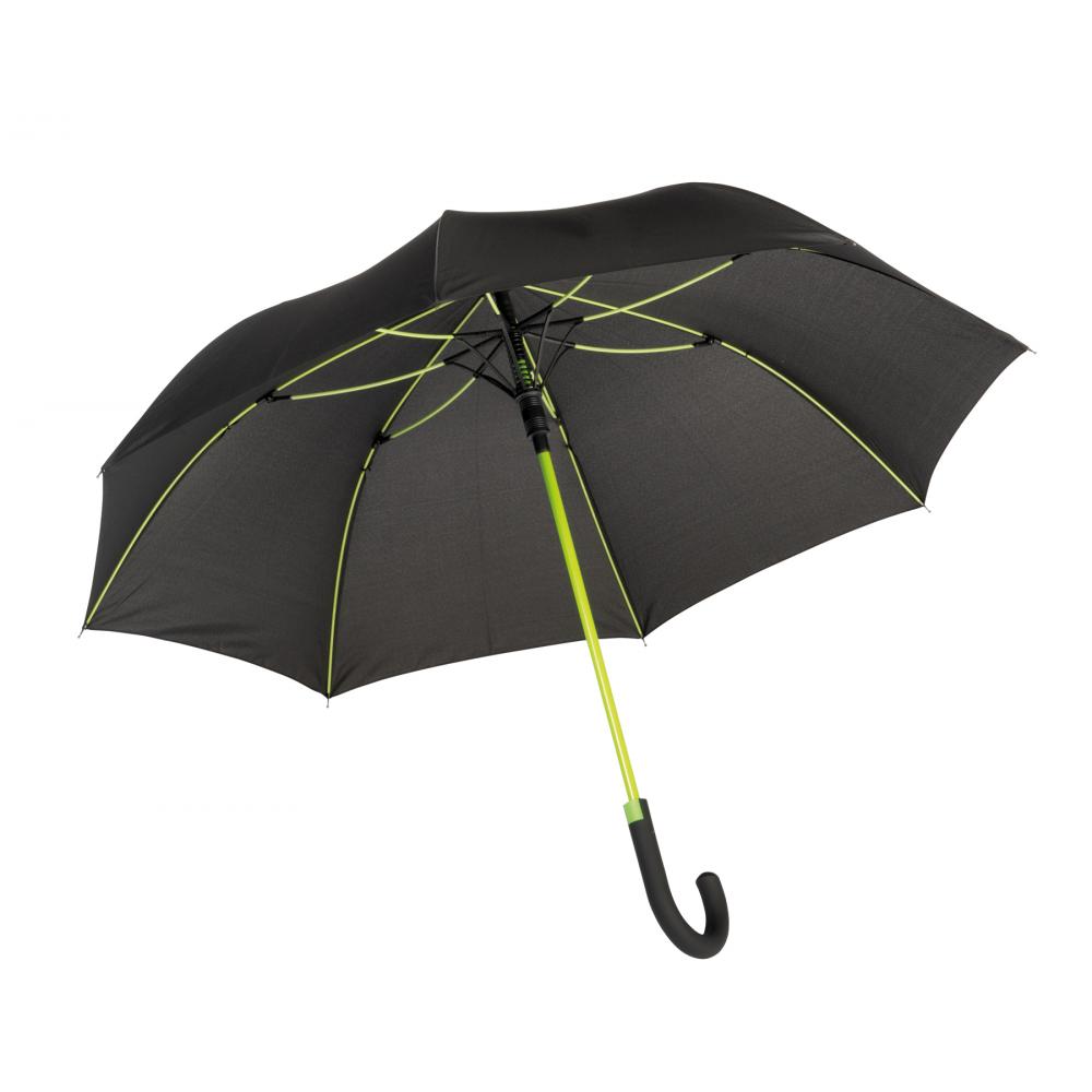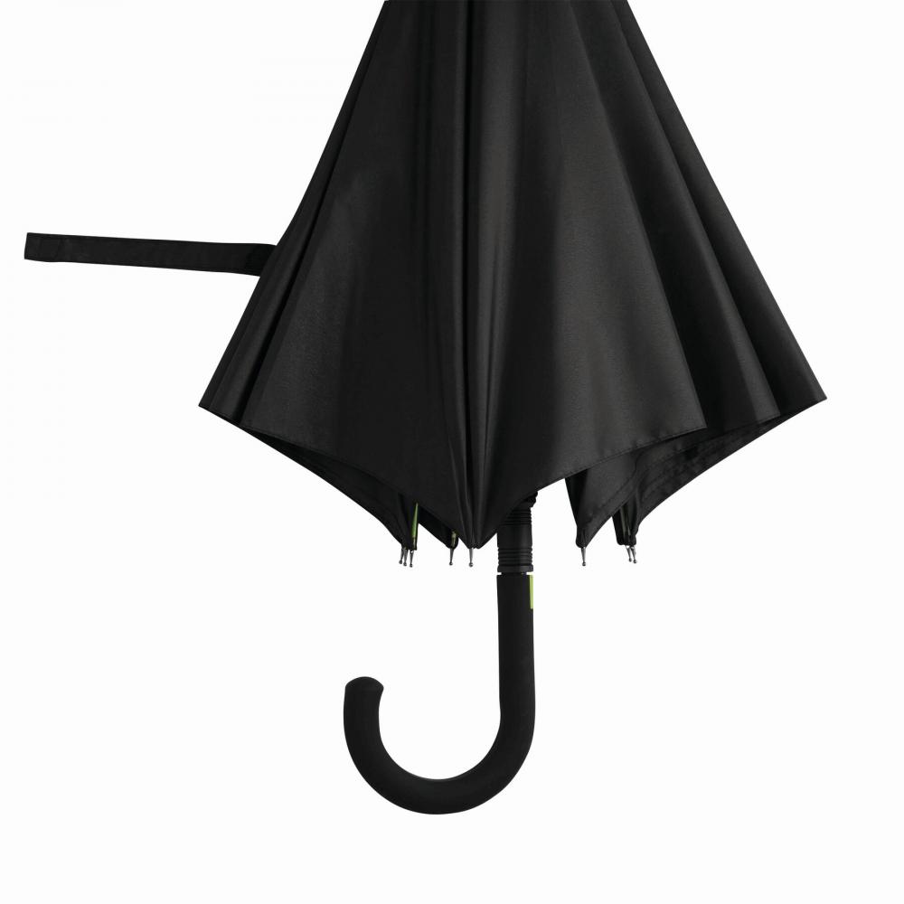 Зонт с автоматической ручкой CANCAN: металлический стержень и ребра из стекловолокна подобранного цвета, с металлическими наконечниками, прорезиненная изогнутая ручка с автоматической кнопкой соответствующего цвета, капюшон из полиэстера-эпонжи, застежка на липучку