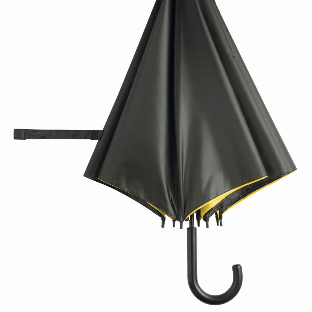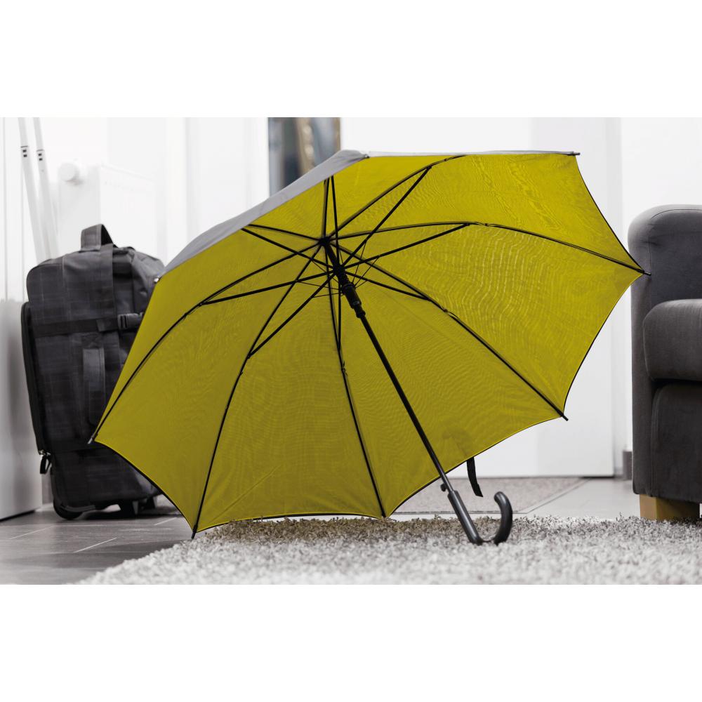Зонт с автоматической ручкой ДВОЙНОЙ с металлическим стержнем, пластиковыми наконечниками и изогнутой ручкой, двухслойный двухцветный капюшон, полиэстер, застежка на липучке