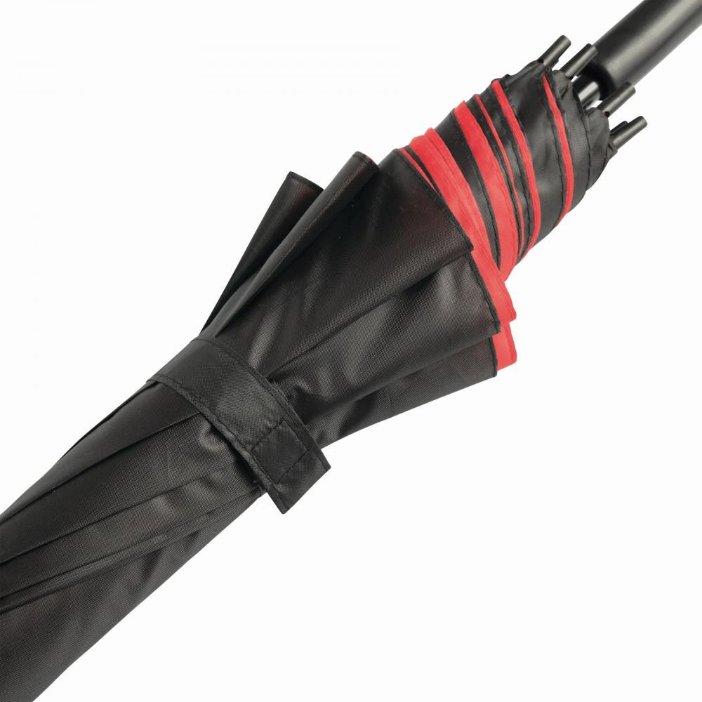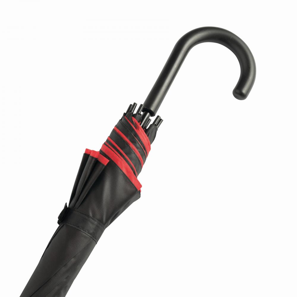 Зонт с автоматической ручкой ДВОЙНОЙ с металлическим стержнем, пластиковыми наконечниками и изогнутой ручкой, двухслойный двухцветный капюшон, полиэстер, застежка на липучке