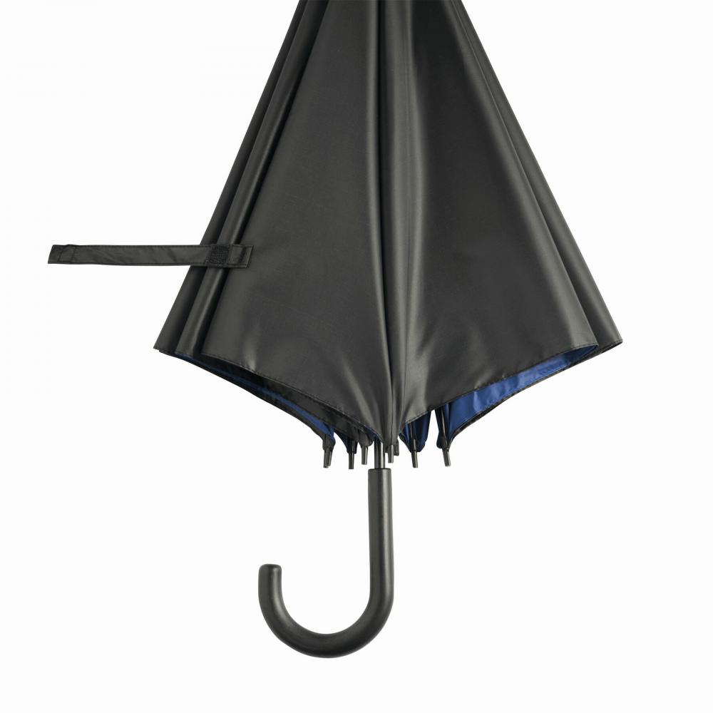 Зонт с автоматической ручкой ДВОЙНОЙ с металлическим стержнем, пластиковыми наконечниками и изогнутой ручкой, двухслойный двухцветный капюшон, полиэстер, застежка на липучке