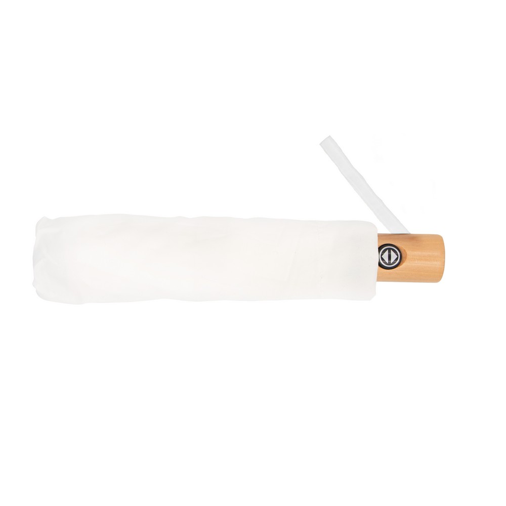 Автоматический складной зонт, изготовлен из RPET, деревянная ручка с ручкой в цвет панелей, 8 панелей, застежка-липучка, чехол в комплекте