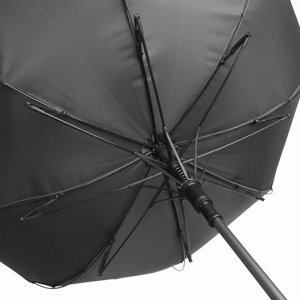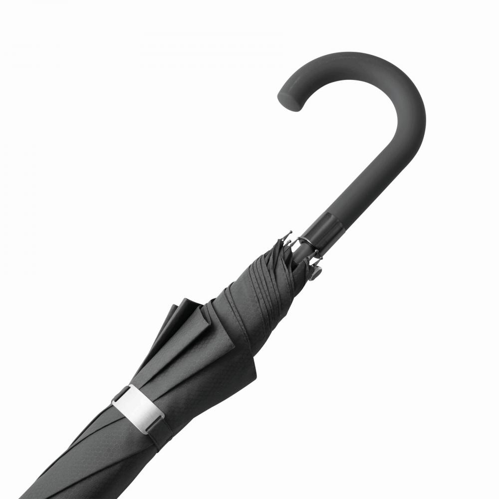 Автоматический ветрозащитный зонт JUBILEE: алюминиевый стержень, ребра из стекловолокна, металлические наконечники, изогнутая ручка с резиновым покрытием соответствующего цвета, навес и чехол из полиэстера с сотовой структурой, с застежкой-кнопкой и металлическая пластина для рекламы