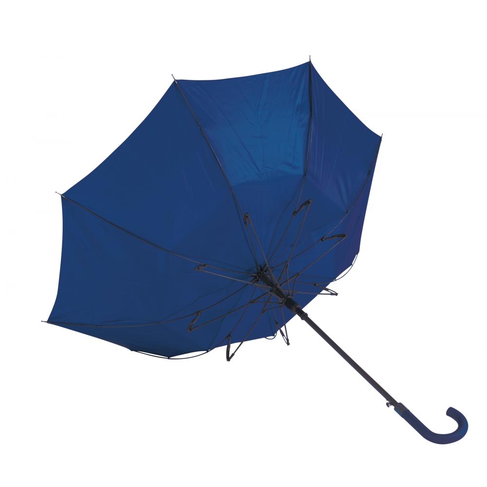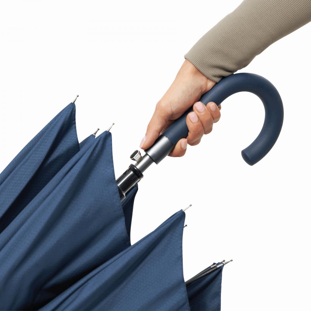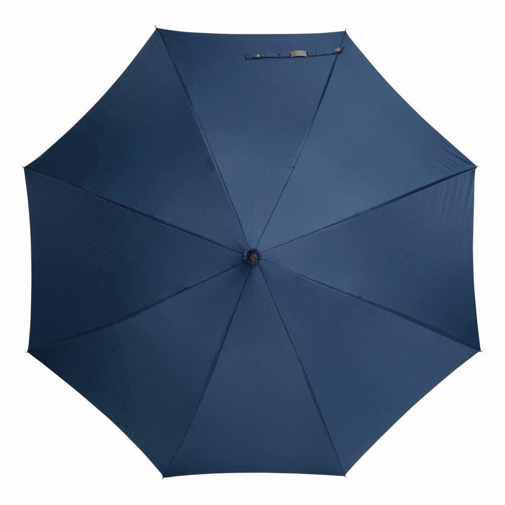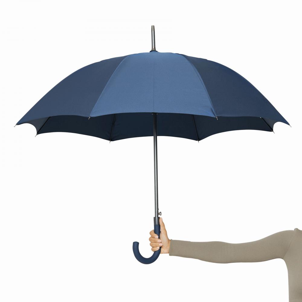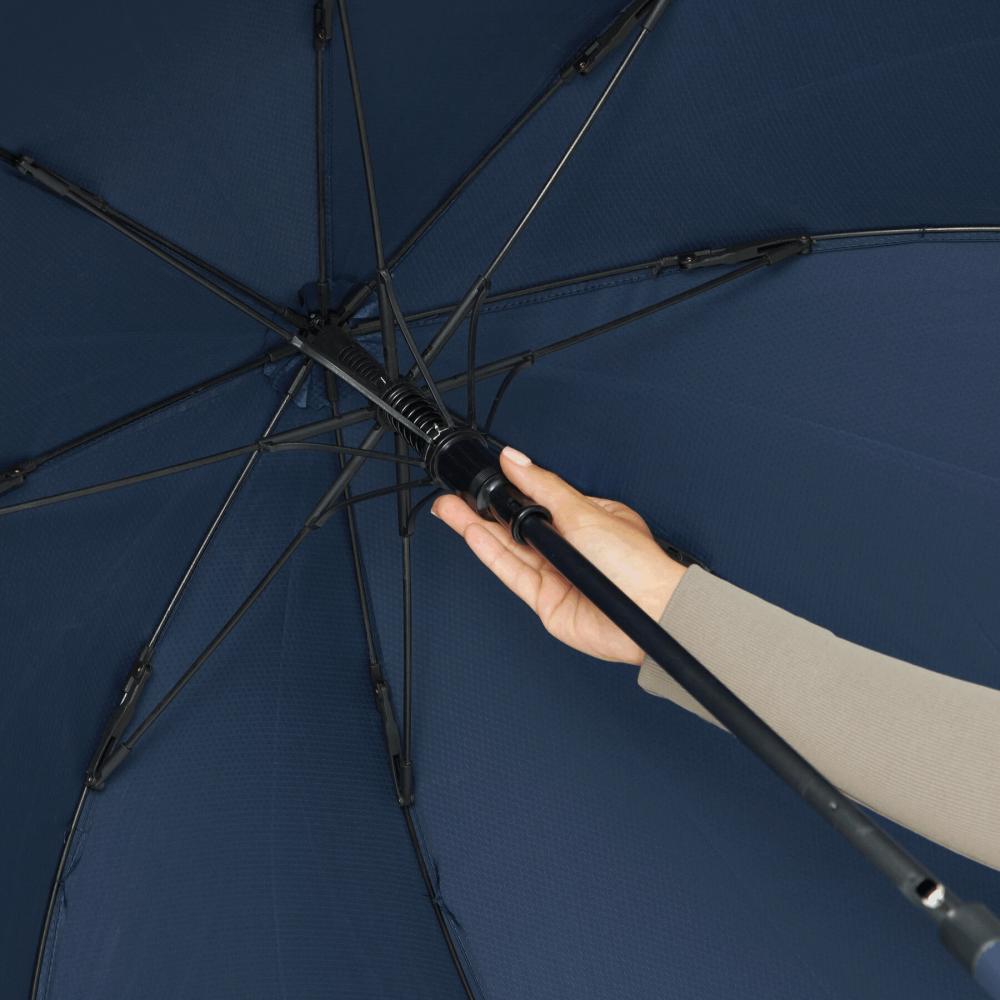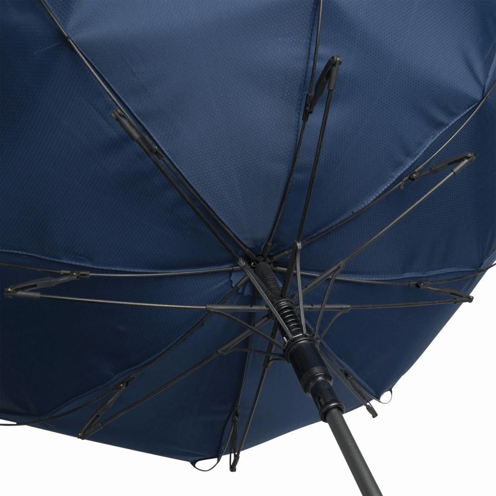 Автоматический ветрозащитный зонт JUBILEE: алюминиевый стержень, ребра из стекловолокна, металлические наконечники, изогнутая ручка с резиновым покрытием соответствующего цвета, навес и чехол из полиэстера с сотовой структурой, с застежкой-кнопкой и металлическая пластина для рекламы