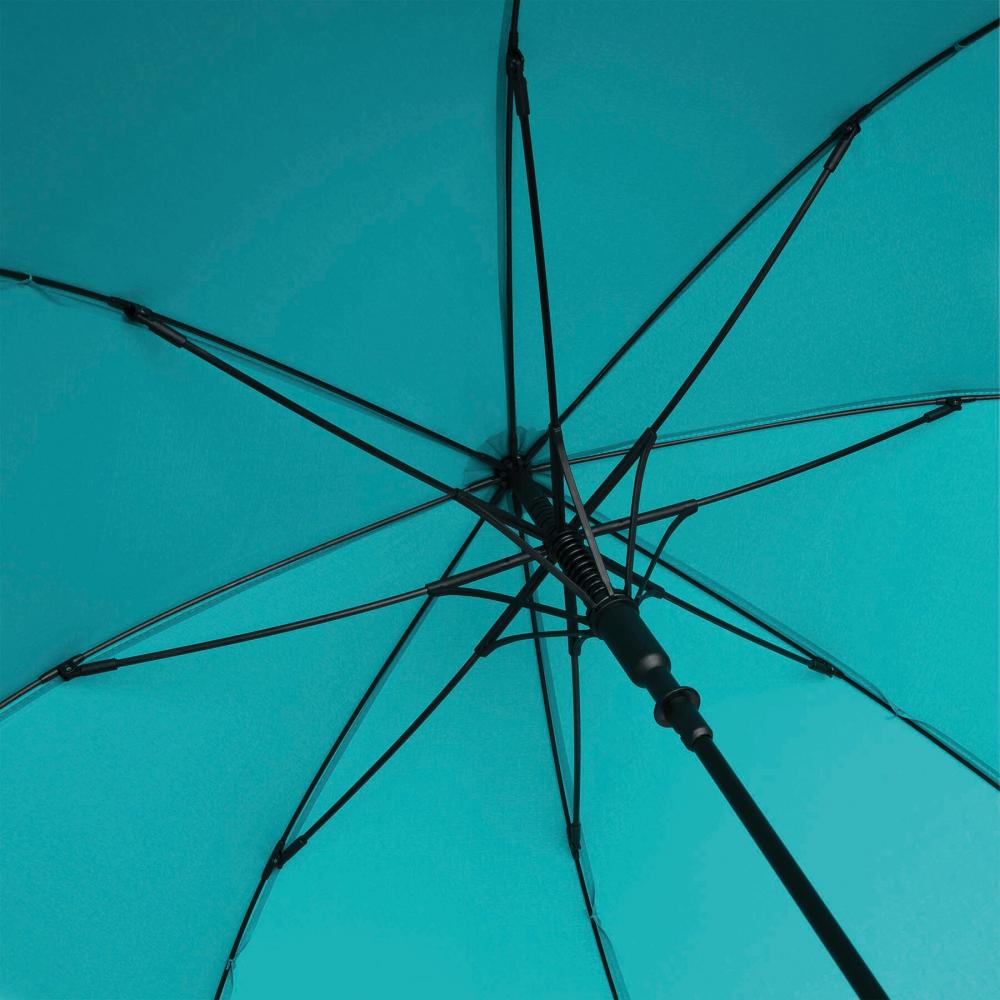Автоматический зонт LAMBARDA с металлическим стержнем, ребрами из стекловолокна, металлическими наконечниками, изогнутой ручкой с прорезиненным покрытием и встроенной кнопкой, капюшоном из полиэстера со специальным водостойким покрытием, застежкой на липучке