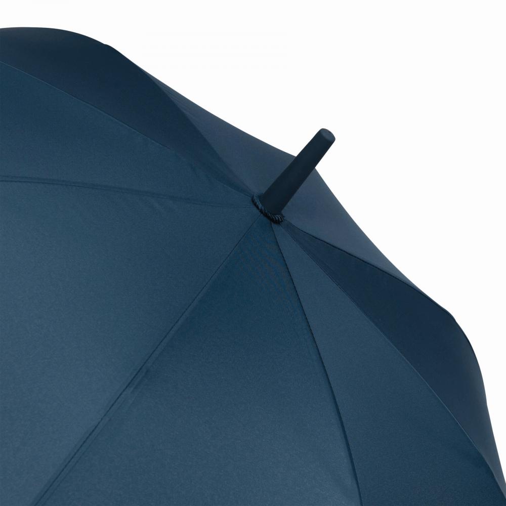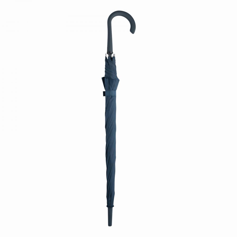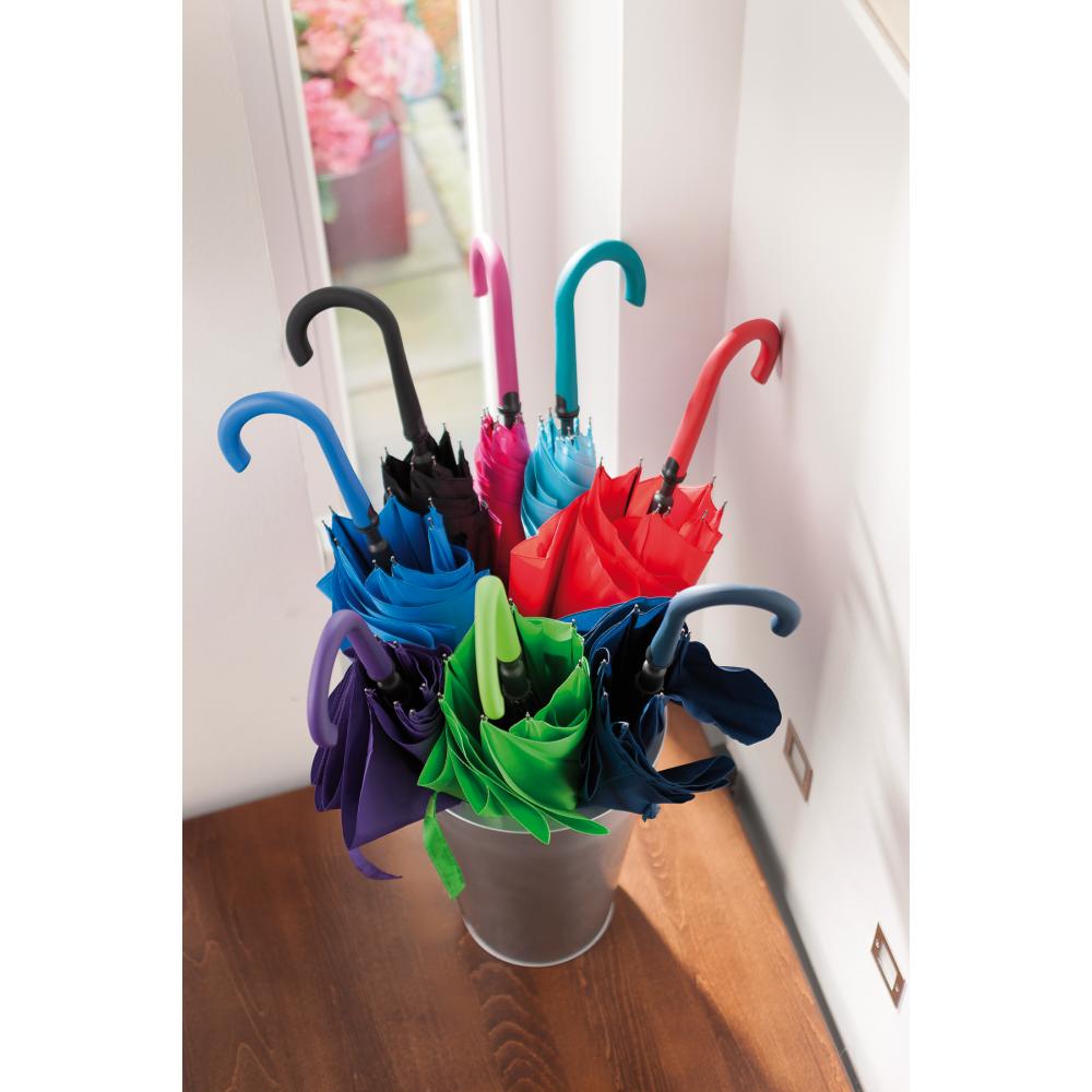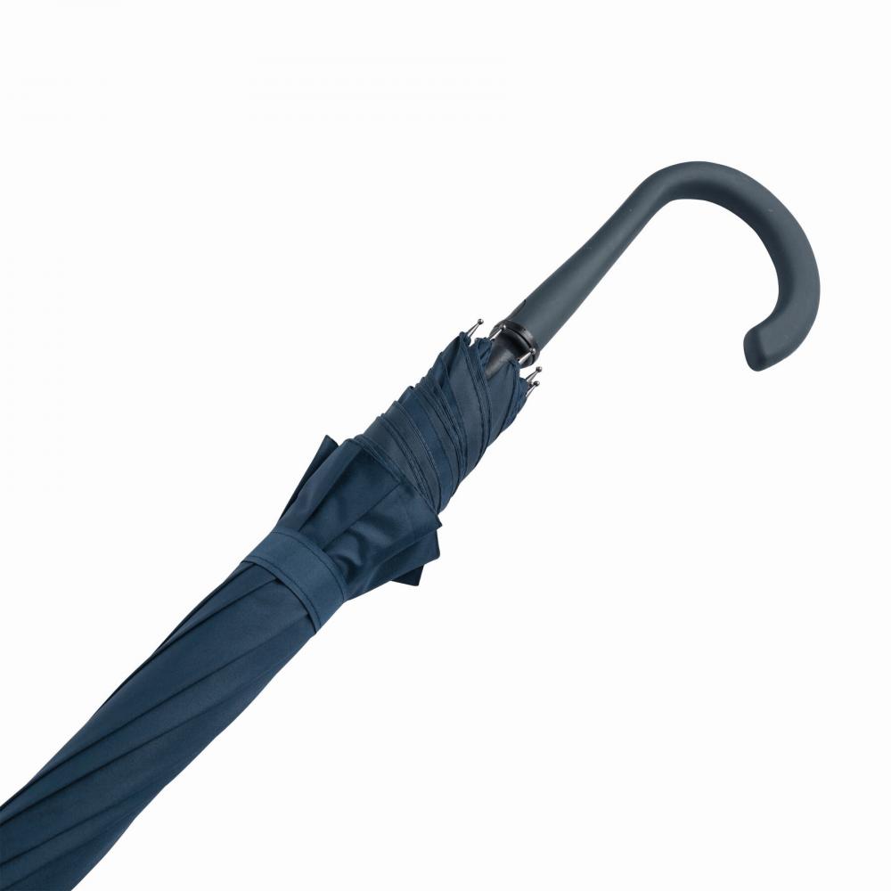 Автоматический зонт LAMBARDA с металлическим стержнем, ребрами из стекловолокна, металлическими наконечниками, изогнутой ручкой с прорезиненным покрытием и встроенной кнопкой, капюшоном из полиэстера со специальным водостойким покрытием, застежкой на липучке
