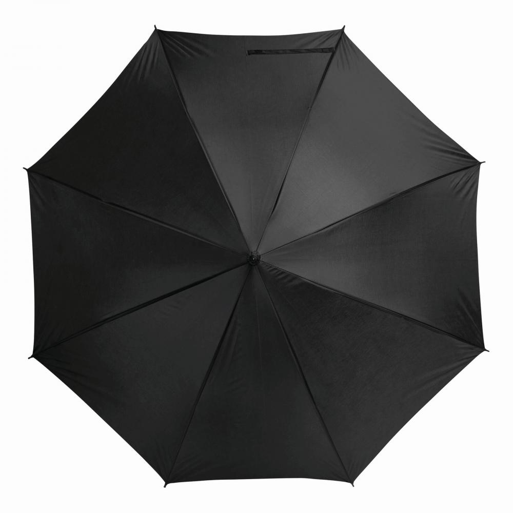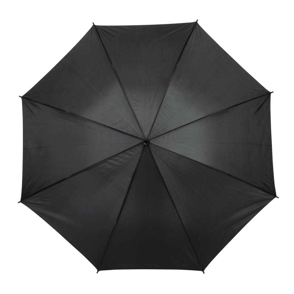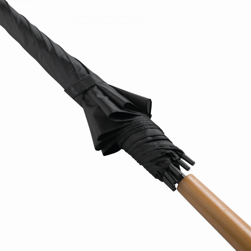 Автоматический зонт-трость LIMBO с металлическим стержнем и спицами, цветными пластмассовыми наконечниками, ручка- имитация дерева, купол- полиэстер, застежка- липучка Velcro.