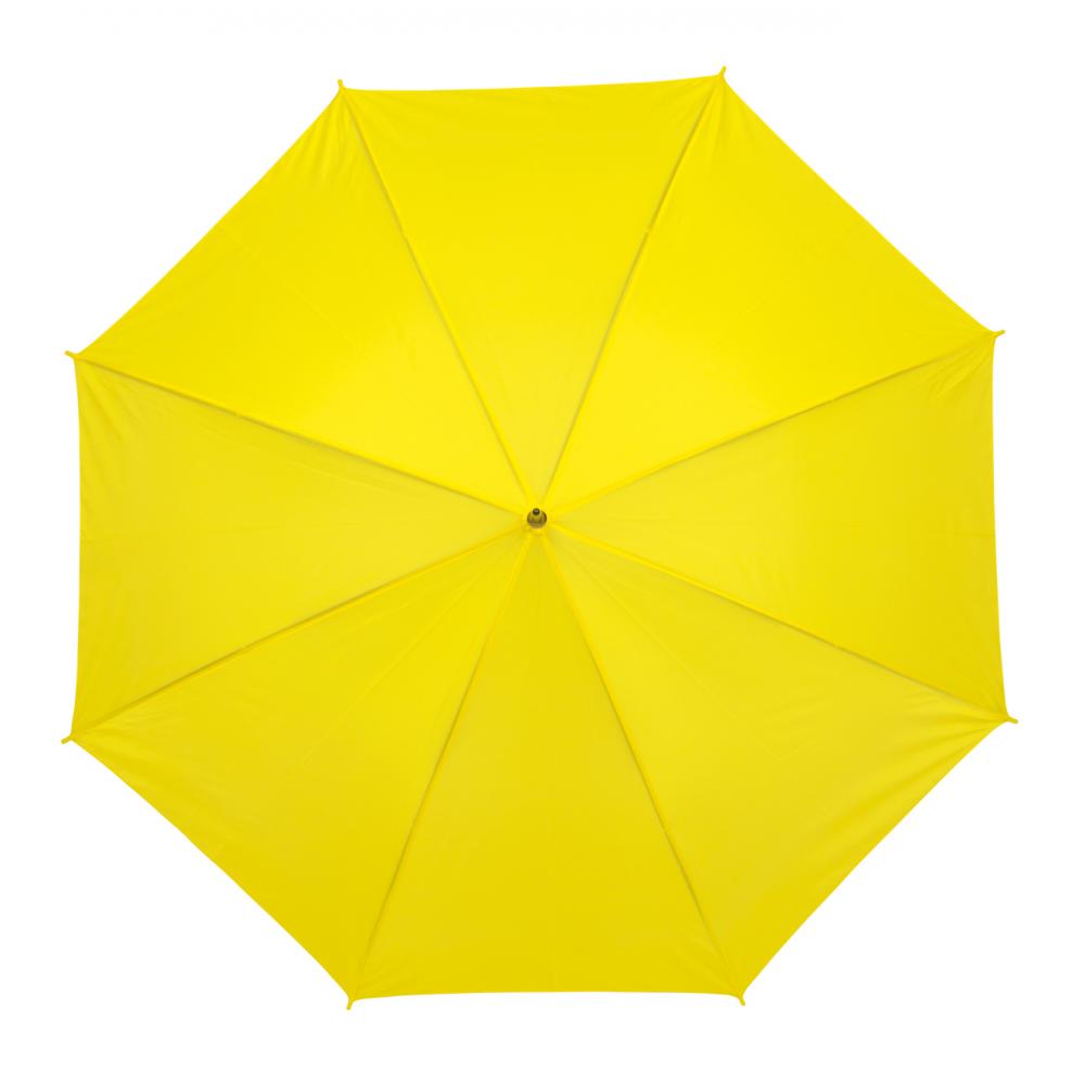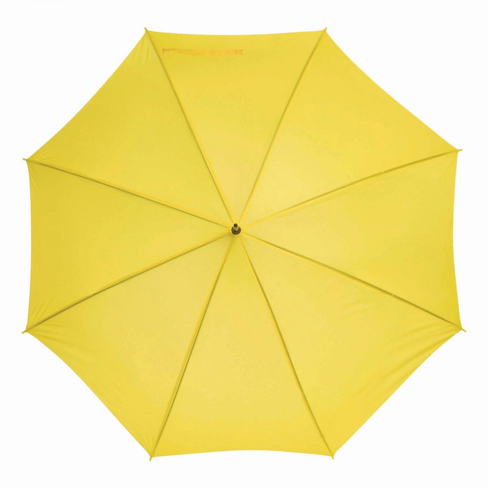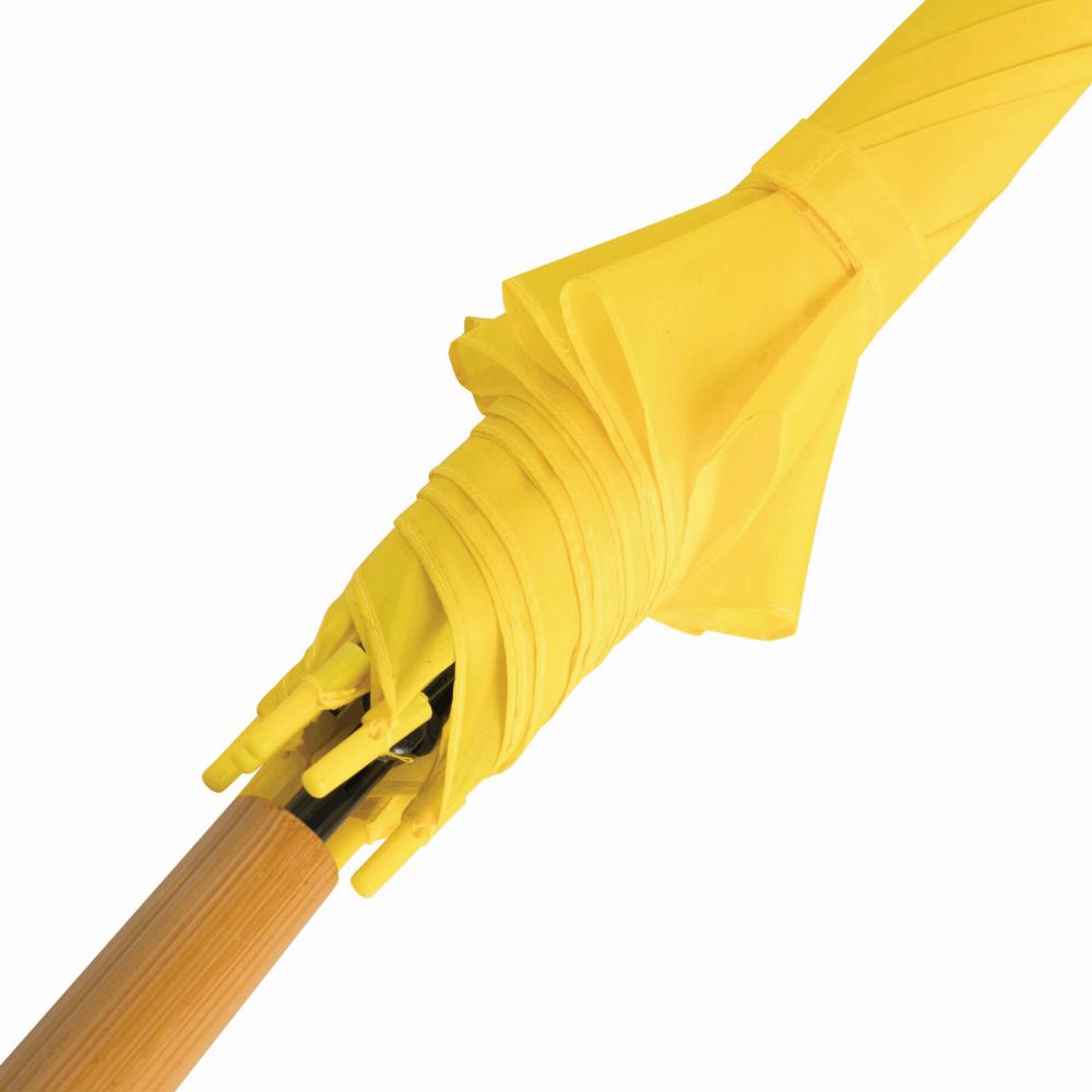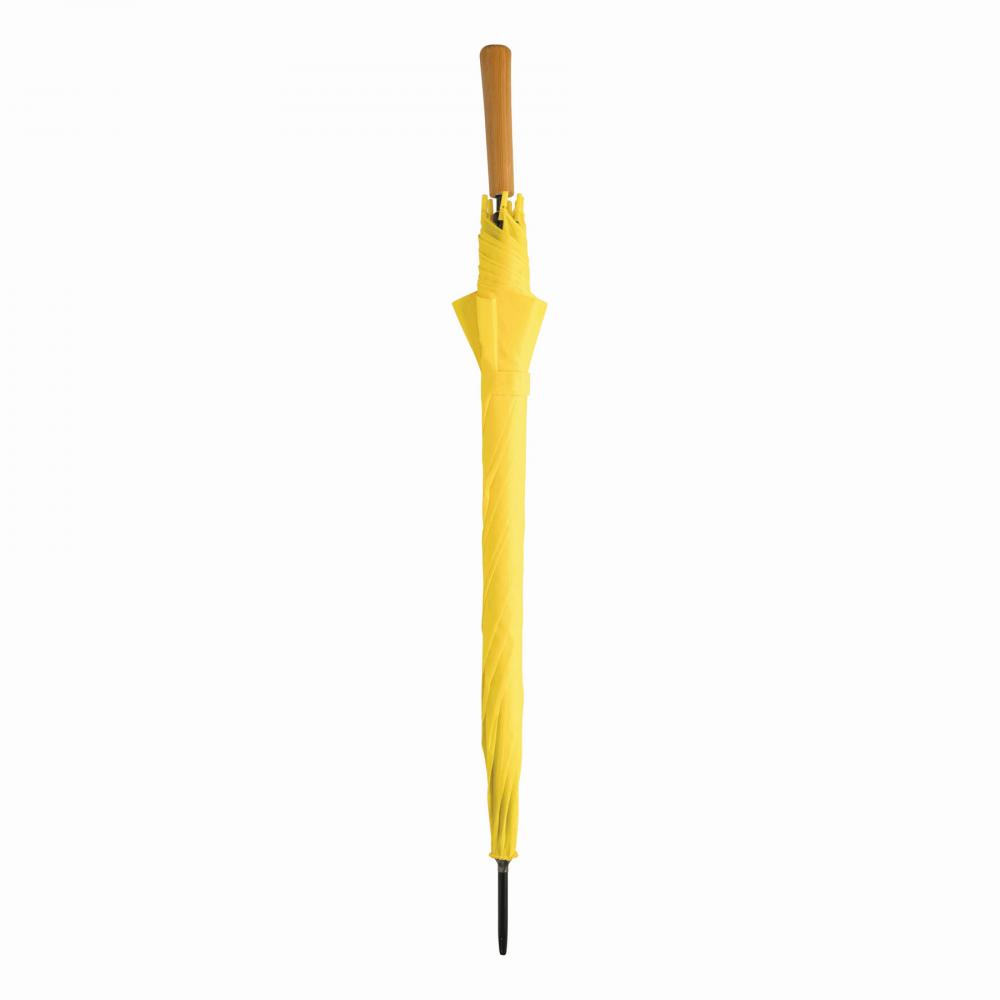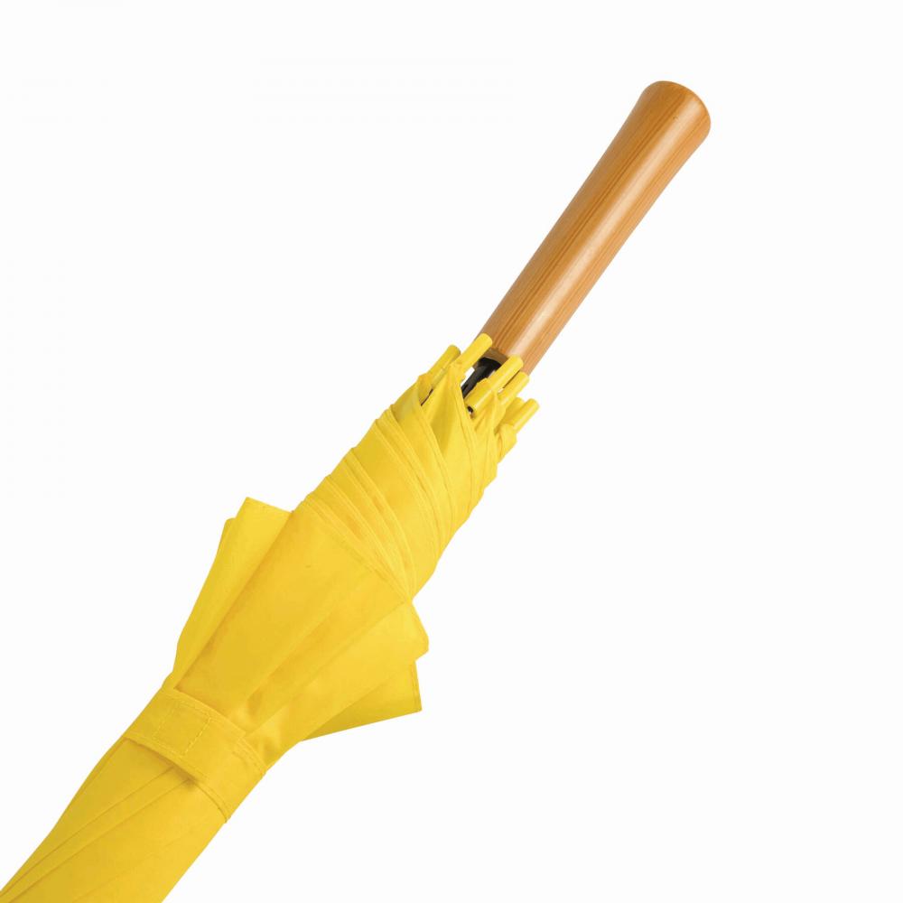 Зонт с автоматической ручкой LIMBO: металлический стержень и ребра, пластиковые наконечники того же цвета, деревянная ручка, капюшон из полиэстера, застежка на липучке