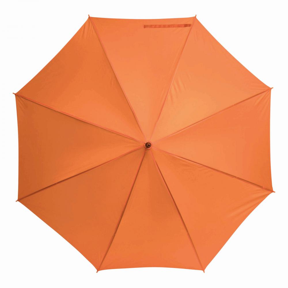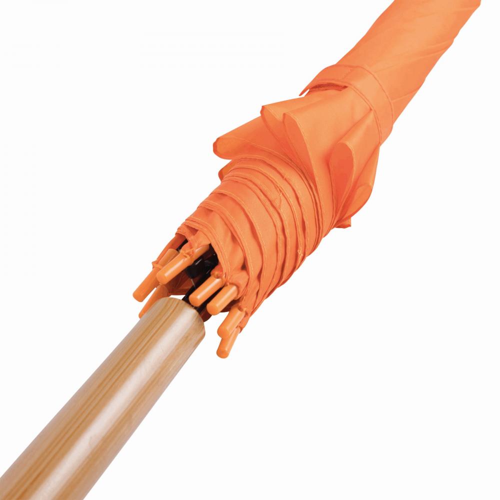 Зонт с автоматической ручкой LIMBO: металлический стержень и ребра, пластиковые наконечники того же цвета, деревянная ручка, капюшон из полиэстера, застежка на липучке