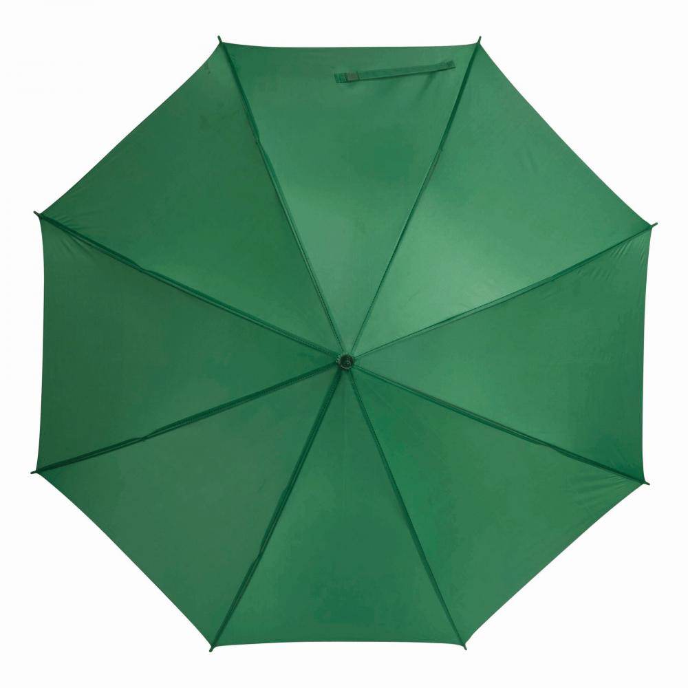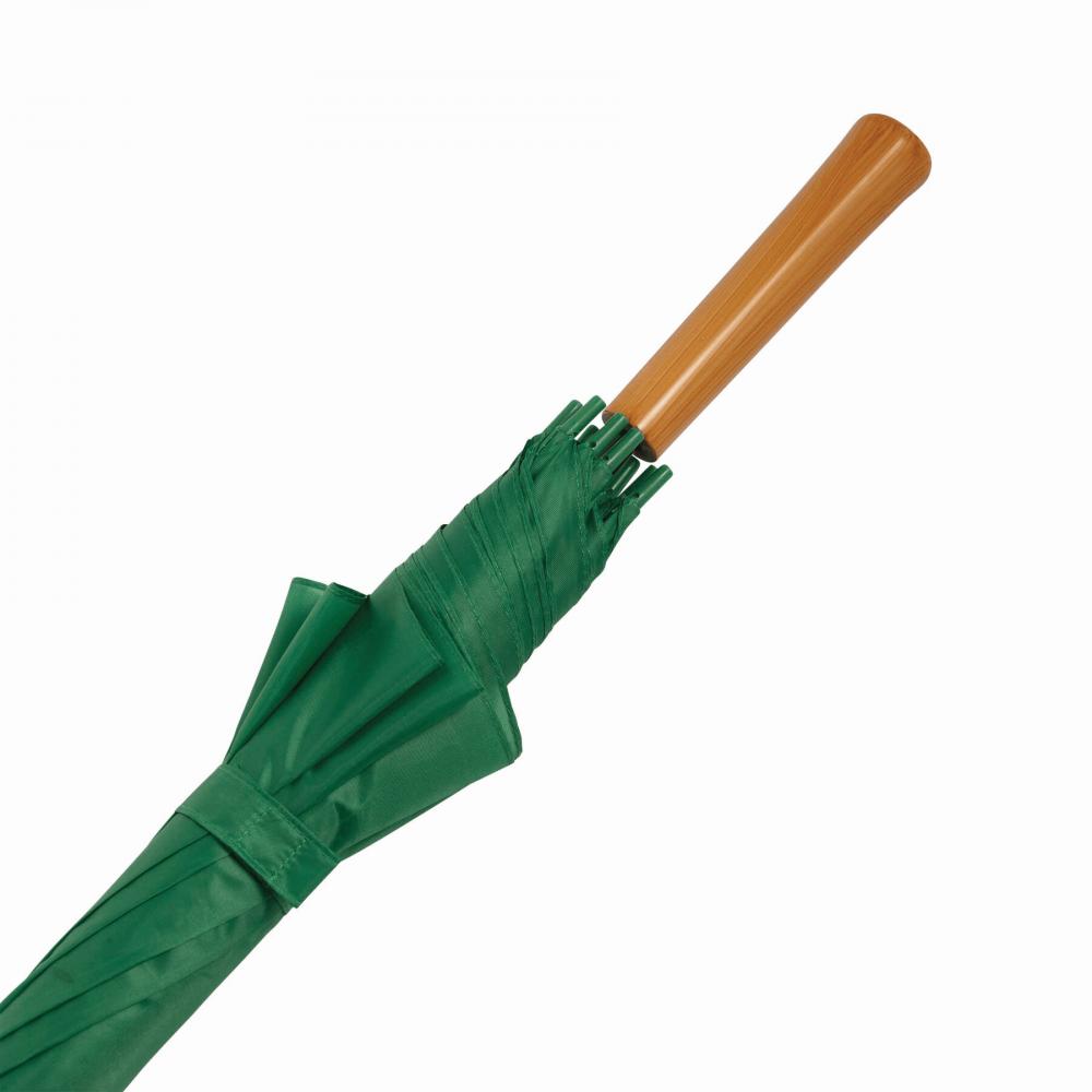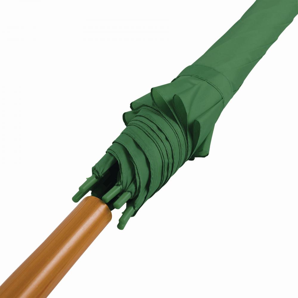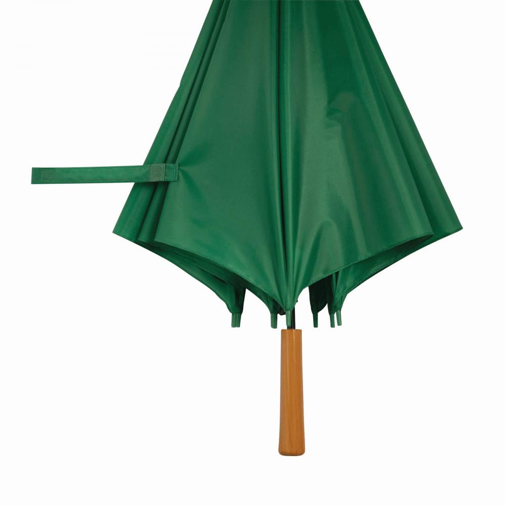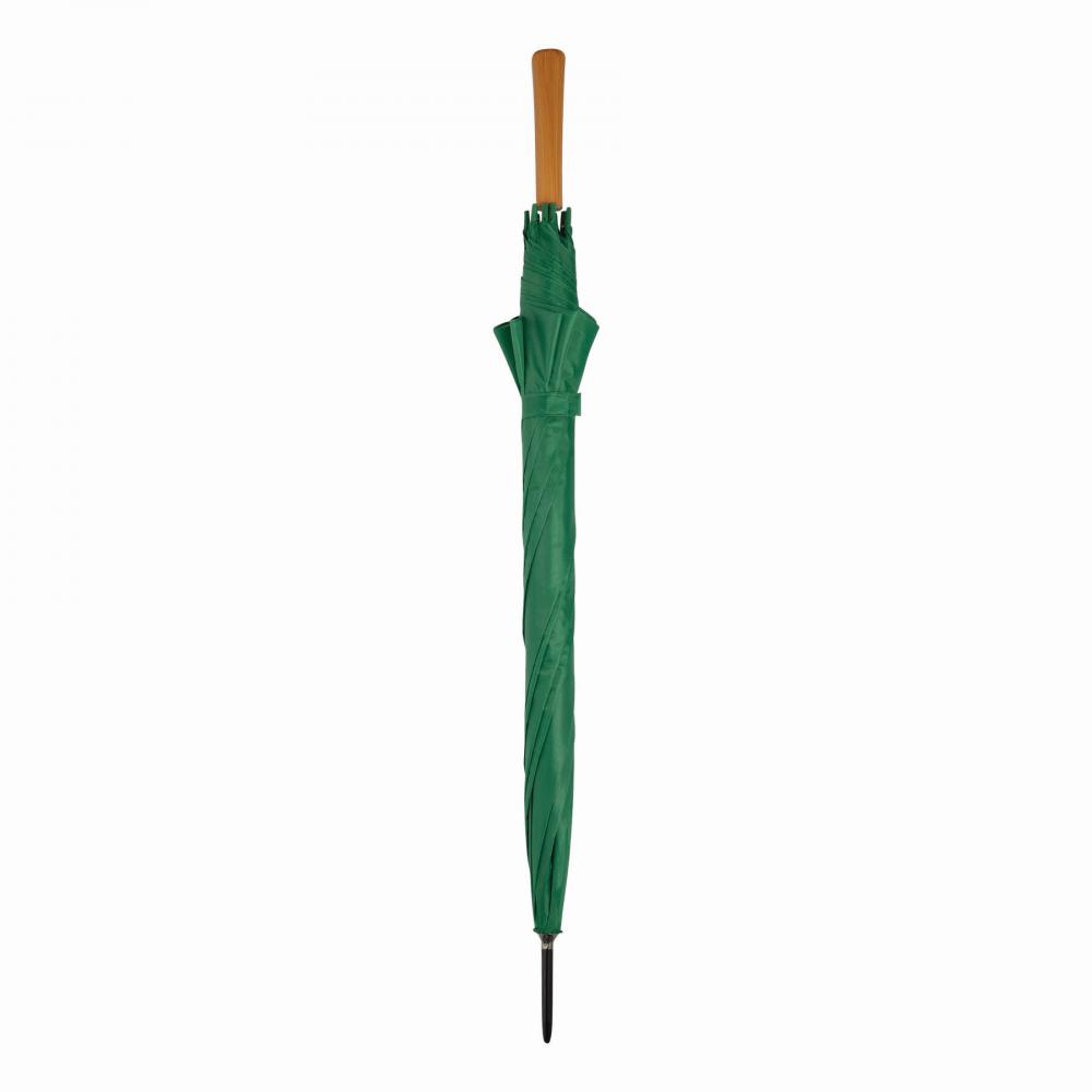 Зонт с автоматической ручкой LIMBO: металлический стержень и ребра, пластиковые наконечники того же цвета, деревянная ручка, капюшон из полиэстера, застежка на липучке