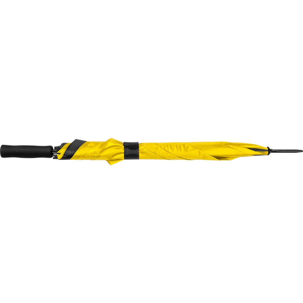 Автоматический зонт из полиэстера с алюминиевым стержнем и ручкой с мягким покрытием. Ваш логотип будет напечатан на одном сегменте.