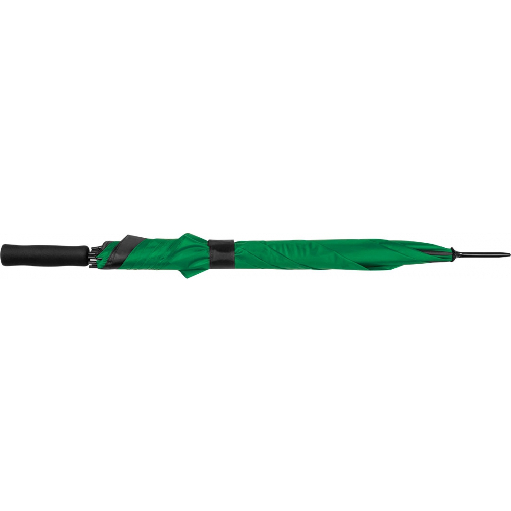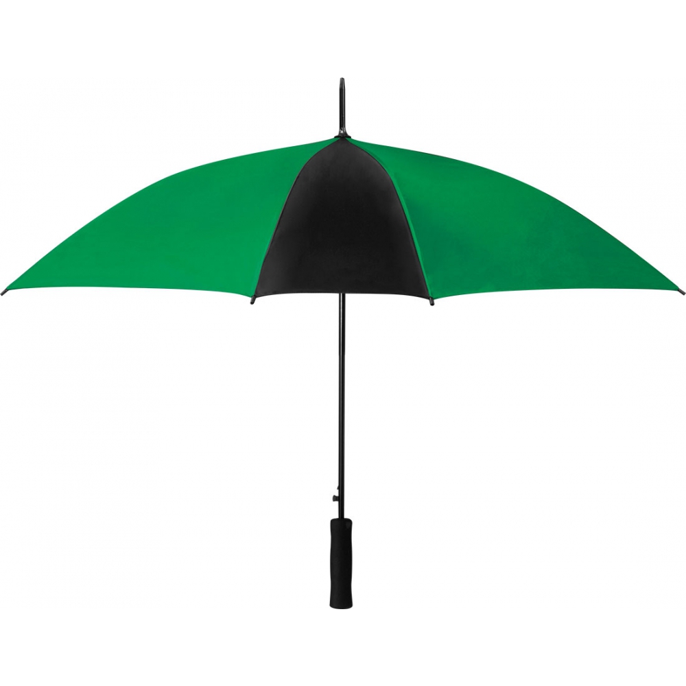 Автоматический зонт из полиэстера с алюминиевым стержнем и ручкой с мягким покрытием. Ваш логотип будет напечатан на одном сегменте.