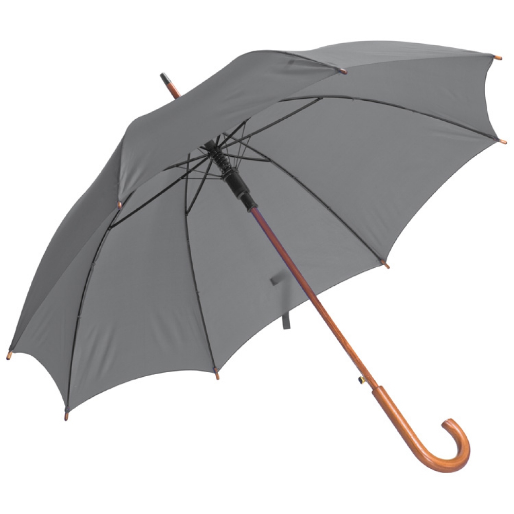 Классический зонт с деревянной, изогнутой ручкой. Доступен в широкой гамме цветов. Рекламный логотип разместим любым цветом на одном из сегментов.