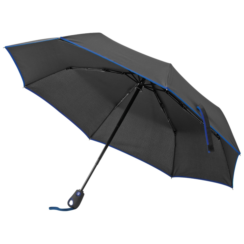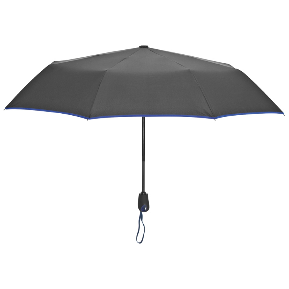 Зонт с цветной окантовкой, из ткани 190 полиестер, стеллаж из стеклопластика. Компактный размер зонта позволяет поместить его большинство сумок.