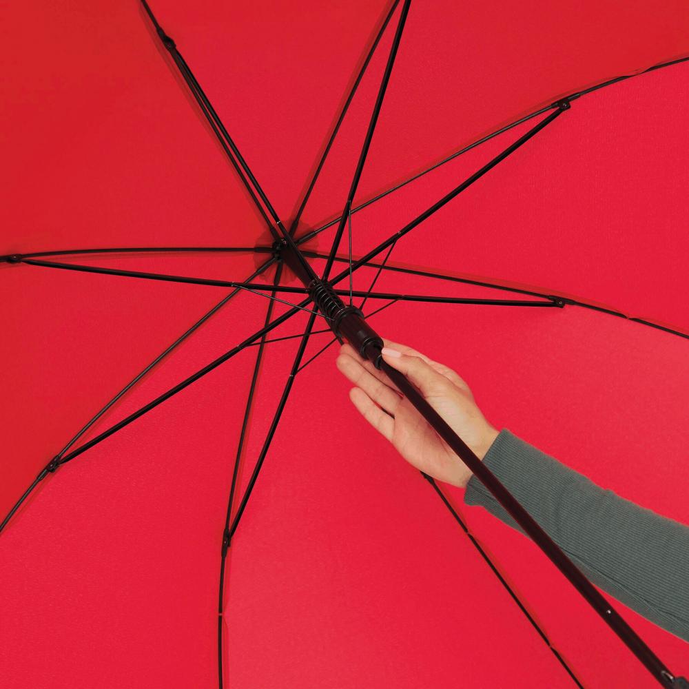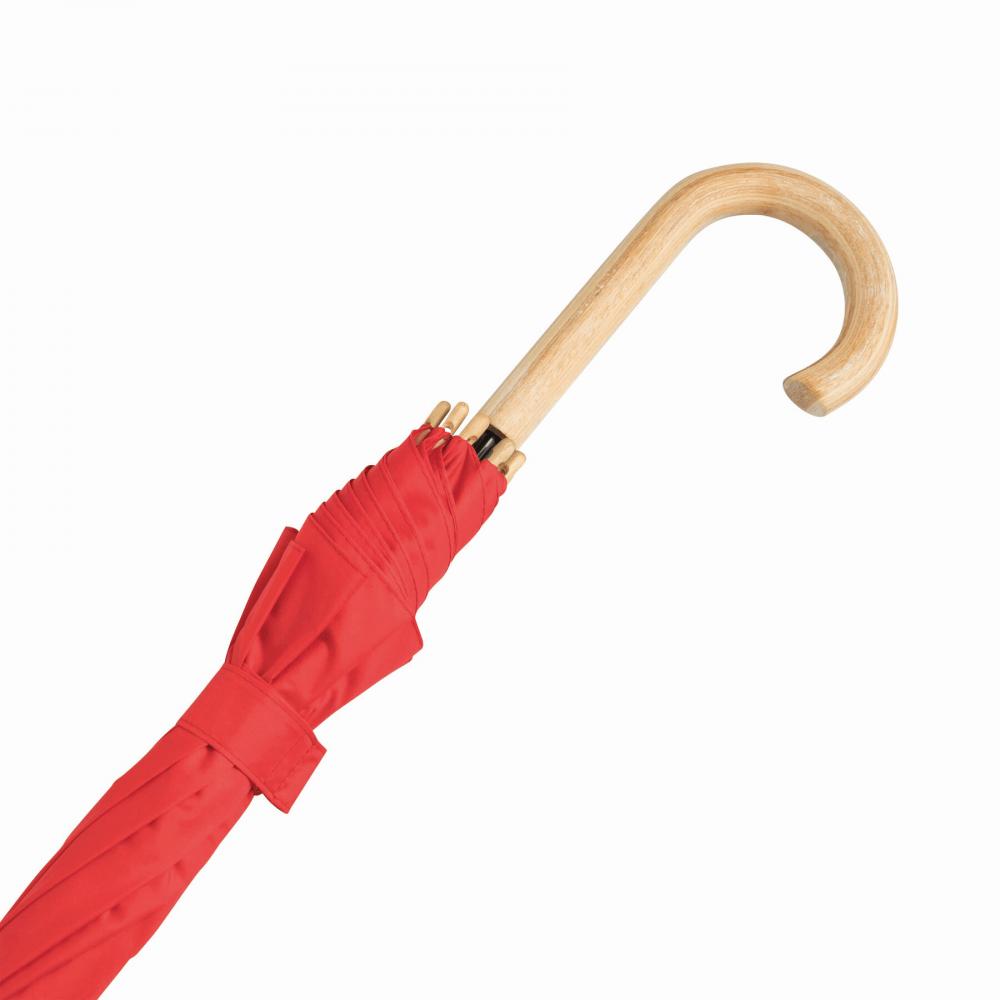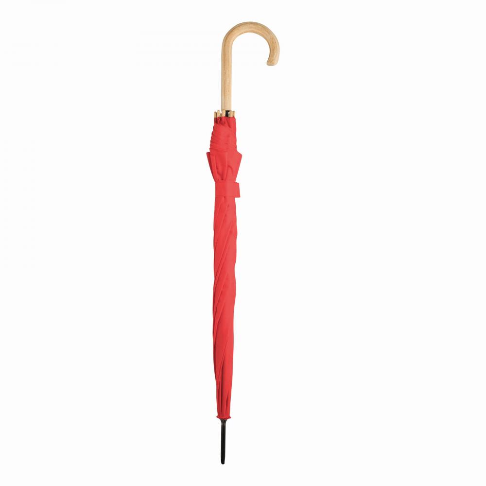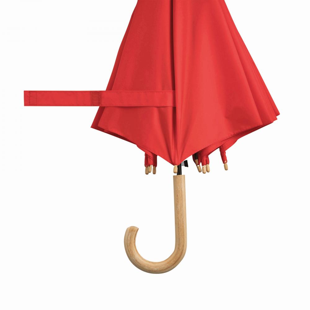 Автоматический зонт-трость LIPSI : с металлическим стержнем, спицами из стекловолокна, деревянными наконечниками и деревянной изогнутой ручкой, куполом из полиэфирного эпонжа из переработанного пластика (Global Recycle Standard), застежкой-липучкой