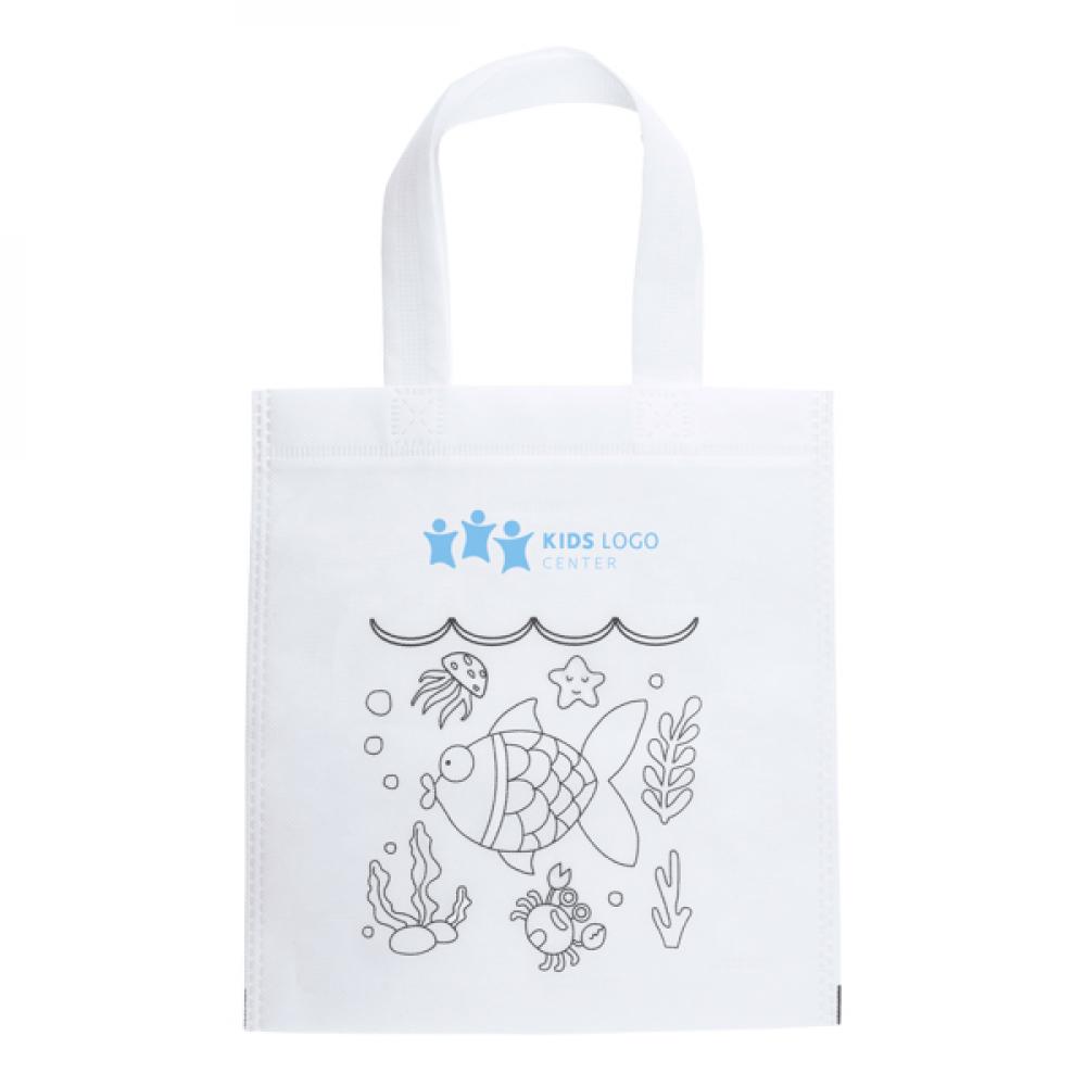 Нетканая детская сумка с дизайном для разрисовки. Включает 5 восковых карандашей различных цветов.