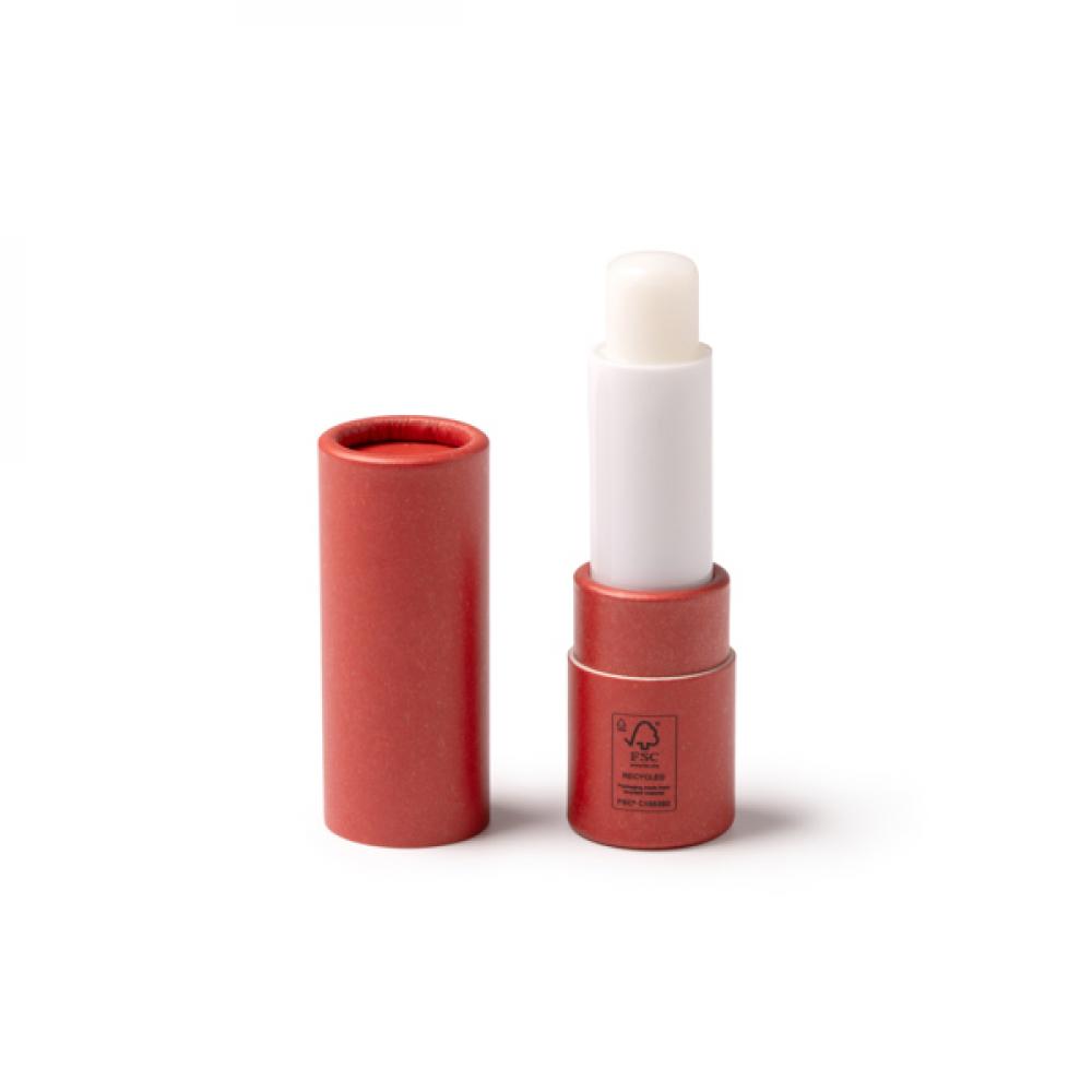 Бальзам для губ в корпусе из переработанного картона. Сертифицирован по стандарту FSC. Защита SPF15.