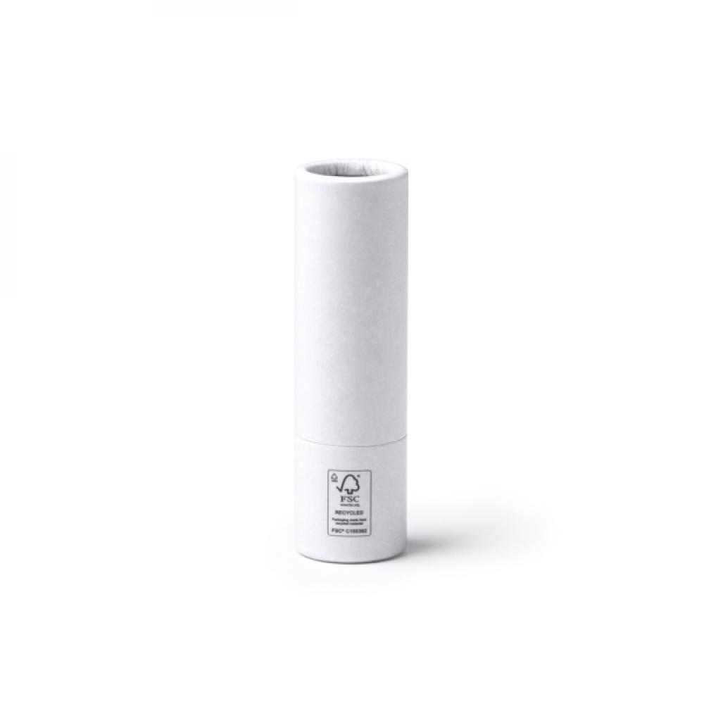 Бальзам для губ в корпусе из переработанного картона. Сертифицирован по стандарту FSC. Защита SPF15.