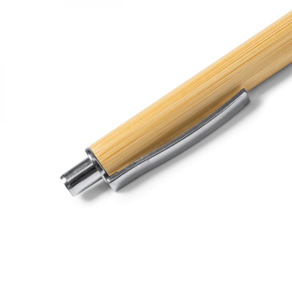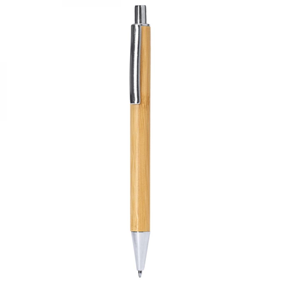 Шариковая ручка Eco-line с корпусом из бамбука. Серебристая кнопка, клипса и наконечник. 1.0 мм. заправка синих чернил.