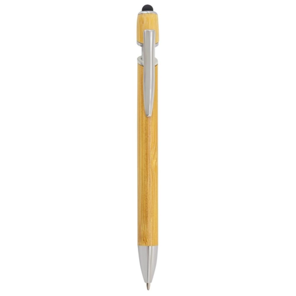 Бамбуковый барель и хромированные металлические детали. Синий чернильный стержень.