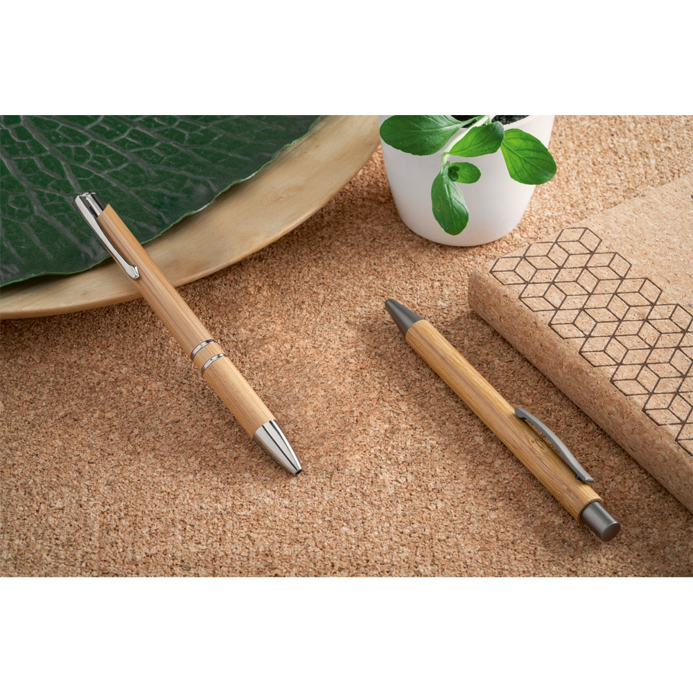Шариковая ручка из бамбука с металлическим зажимом. Экологически чистый продукт. Синие чернила. Ø11 x 137 мм