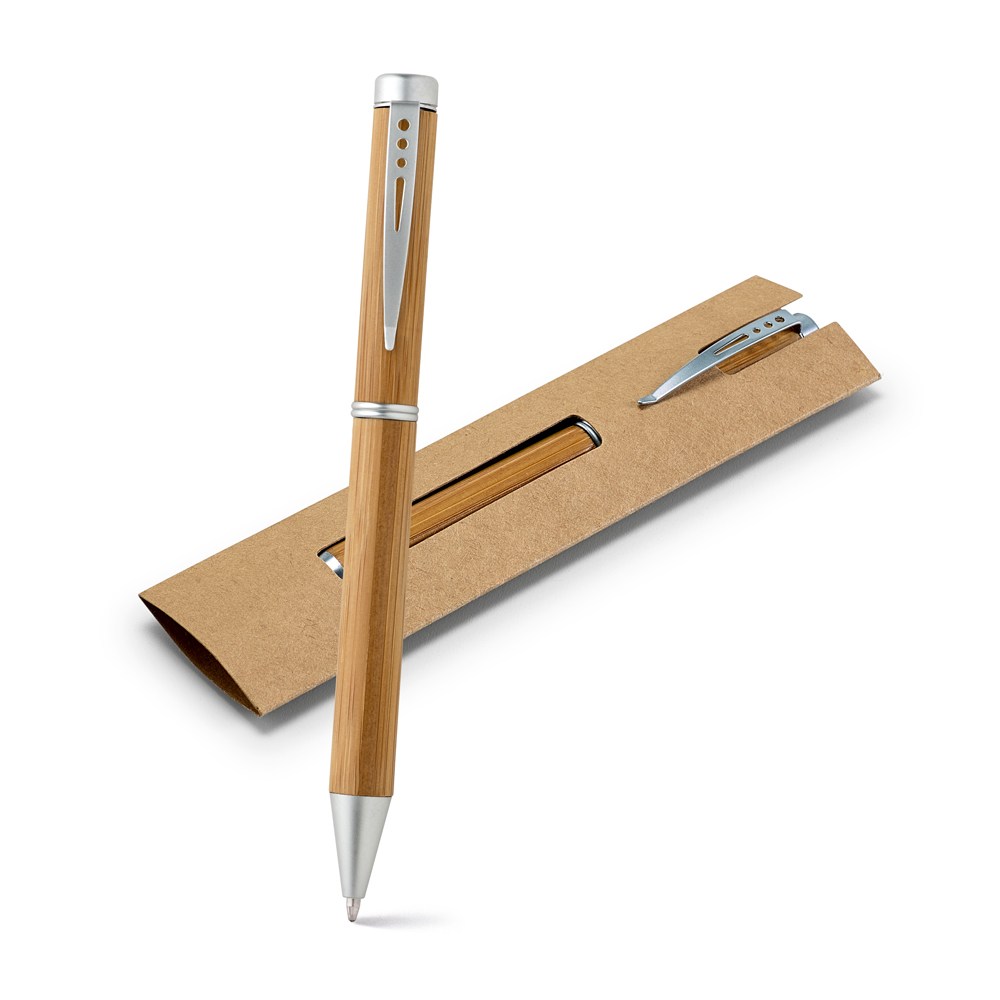 Бамбуковая шариковая ручка с поворотным механизмом и металлическим. Поставляется в подарочном картонном чехле. ø11 x 137 мм | сумка: 155 x 40 мм