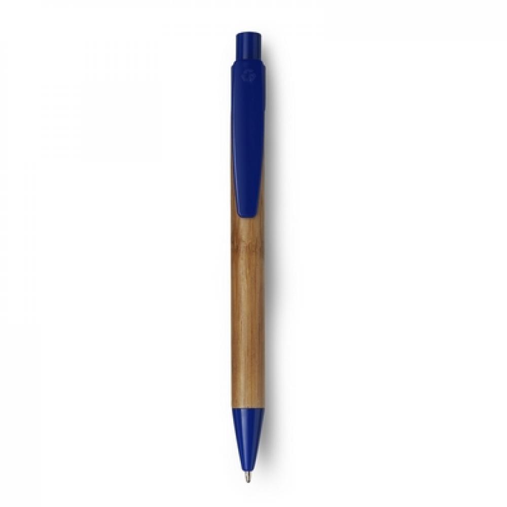 Шариковая ручка с бамбуковым корпусом и цветными пластиковыми деталями