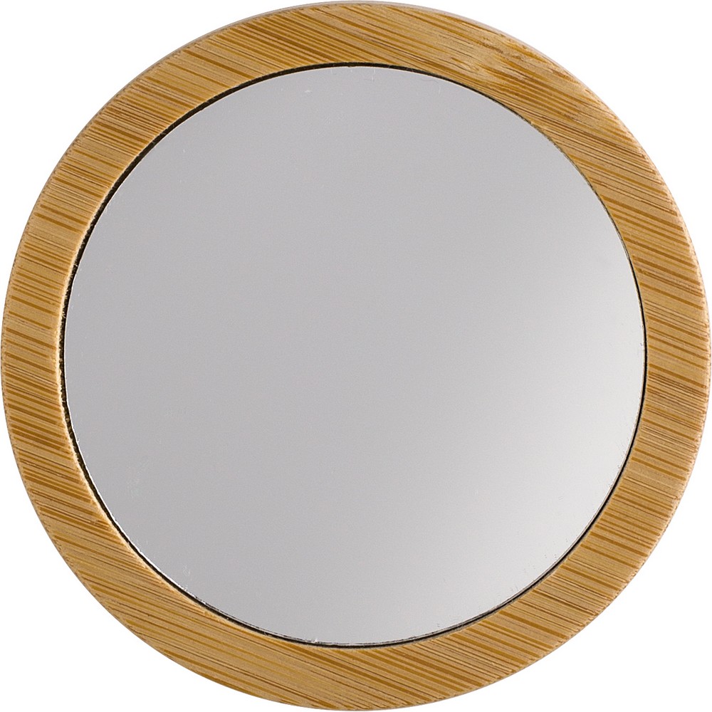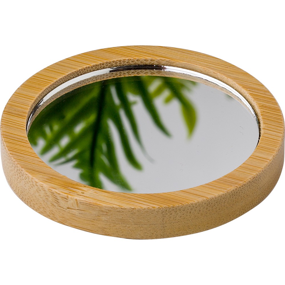 Зеркало с корпусом из бамбука, круглое, карманного размер.
